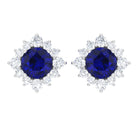 1.25 CT Blue Sapphire Solitaire Stud Earrings with Diamond Halo