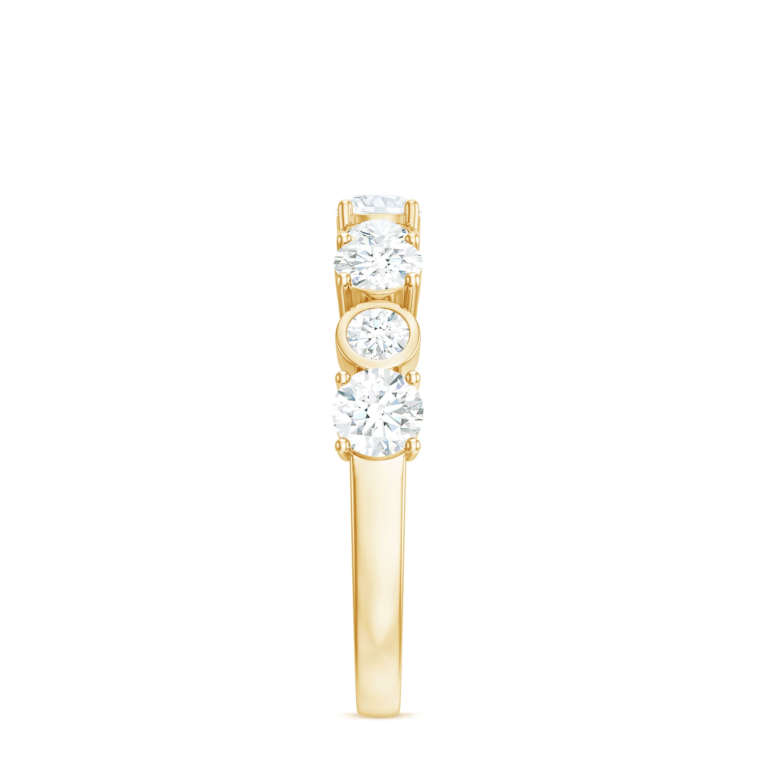 Celebrate love and special moments with this Moissanite Half Eternity Band. Designed with comfort and style in mind, this elegant Stackable Eternity Band features a row of round cut moissanite stones placed along the top half of the band. The stones are set in an alternating pattern of bezel and prong setting, giving the ring a unique and eye-catching look. Each moissanite is carefully selected for its D color and VS1 clarity. The half eternity design keeps the stones on the upper part of the ring only, making it lighter and more comfortable for everyday wear, without losing its luxurious appearance. The secure prong and bezel setting not only adds style but also helps protect each stone, ensuring long-lasting shine. Whether you are celebrating a wedding, anniversary, or any meaningful milestone, this Moissanite Wedding Band Ring is a perfect choice. It is versatile enough to be worn on its own for a simple, elegant look or stacked with other rings for a trendy, layered style. With its blend of timeless design and modern flair, this Moissanite Anniversary Band is a meaningful piece that will never go out of style.