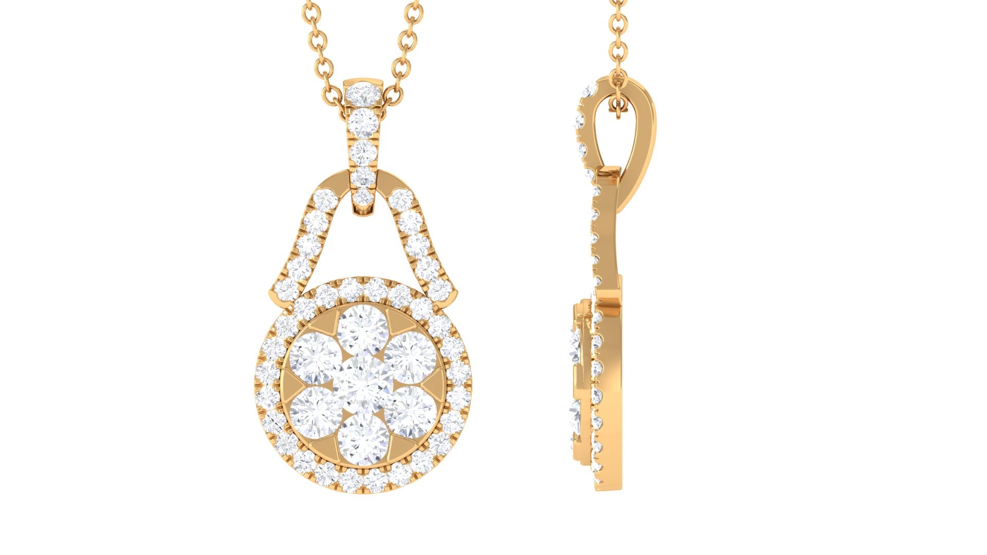 Indulge in modern elegance with this stunning Drop Pendant Necklace. The unique design features sparkling Moissanite gemstones in pave setting. The perfect accessory to elevate any outfit, this pendant is versatile and timeless. This pendant necklace is the perfect addition to your jewelry collection or a thoughtful gift for a loved one.