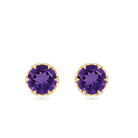 Mesmerize her by presenting these breathtaking Amethyst Stud Earrings, a perfect fusion of romance, elegance and timeless charm. These Fine Earrings feature a 5 mm Round Shape Amethyst gemstone set in 6 Claw Prong Setting, its deep violet glow symbolizing serenity, love and spiritual balance. Beneath the center stone, a delicate flower like design unfolds, intricately studded with sparkling Diamond stones that add a graceful brilliance to the piece. Finished with a secure Screw Back Closure, these Amethyst Diamond Earrings offer both luxury and comfort, making them perfect for daily wear or special occasions. Whether paired with an elegant dress or a casual ensemble, these Amethyst Ear Studs bring a touch of sophistication that enhances every style effortlessly. Presented in an elegant jewelry box, these Amethyst Studs make a heartfelt gift for anniversaries or birthdays.
