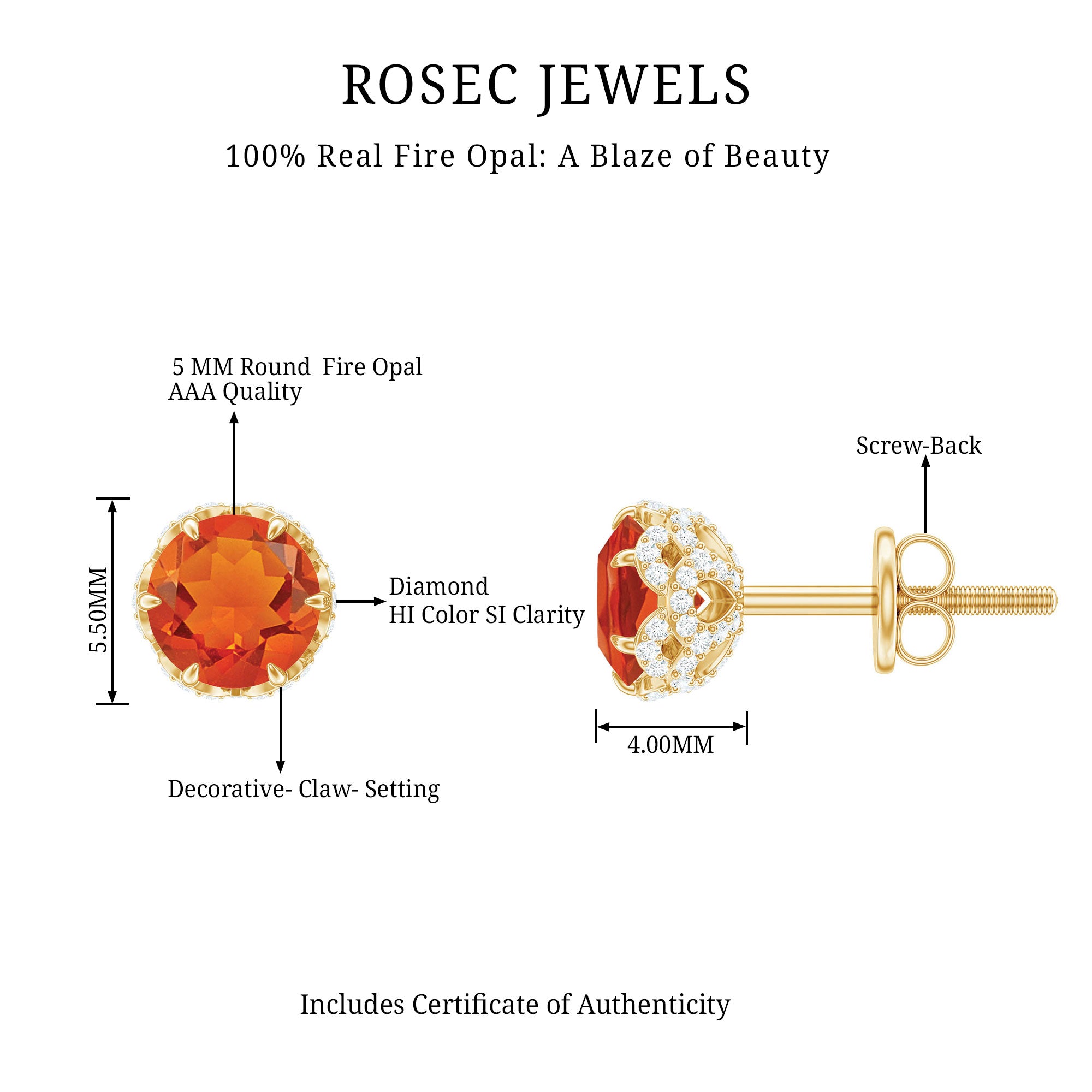 1.25 CT Claw Set Fire Opal Solitaire and Diamond Stud Earrings