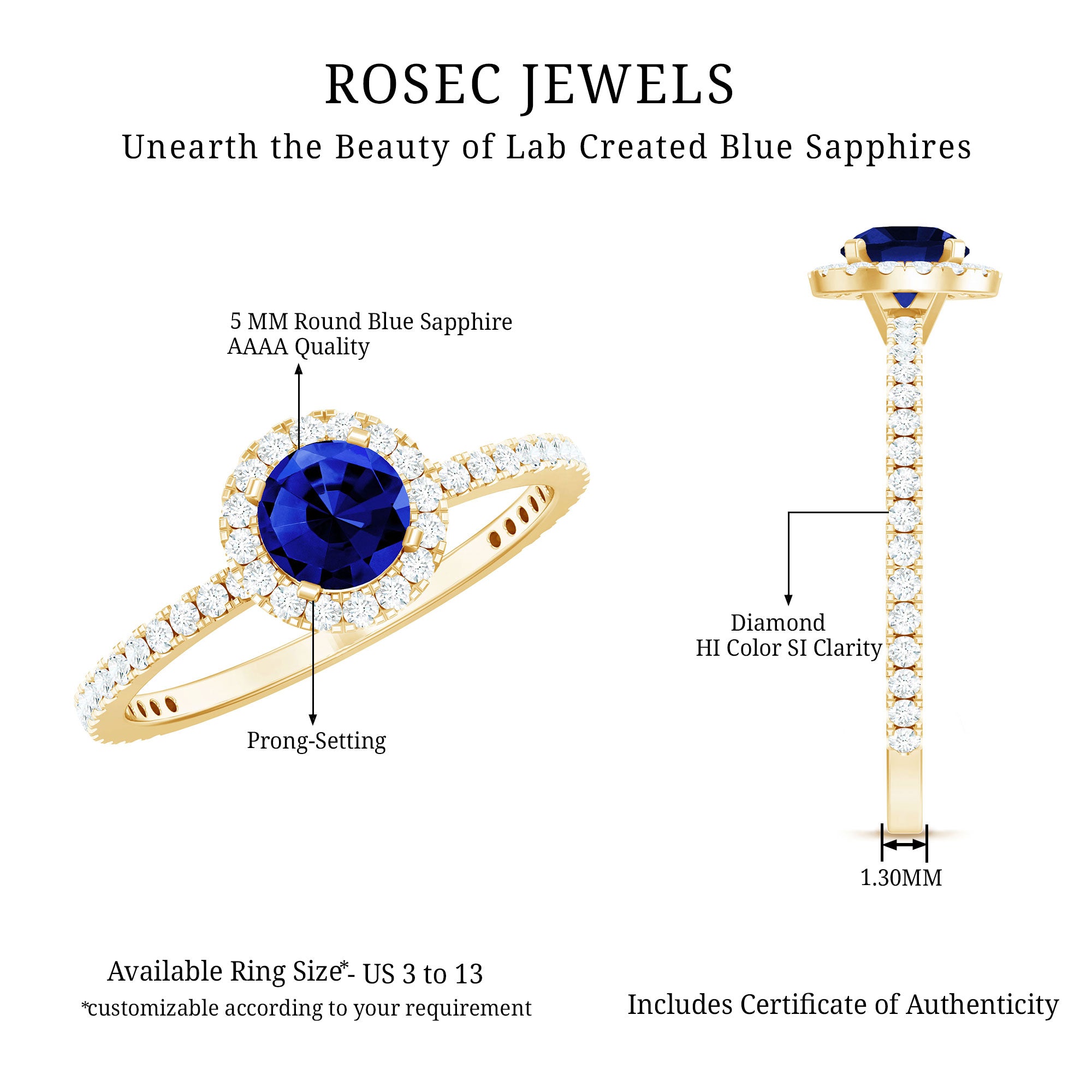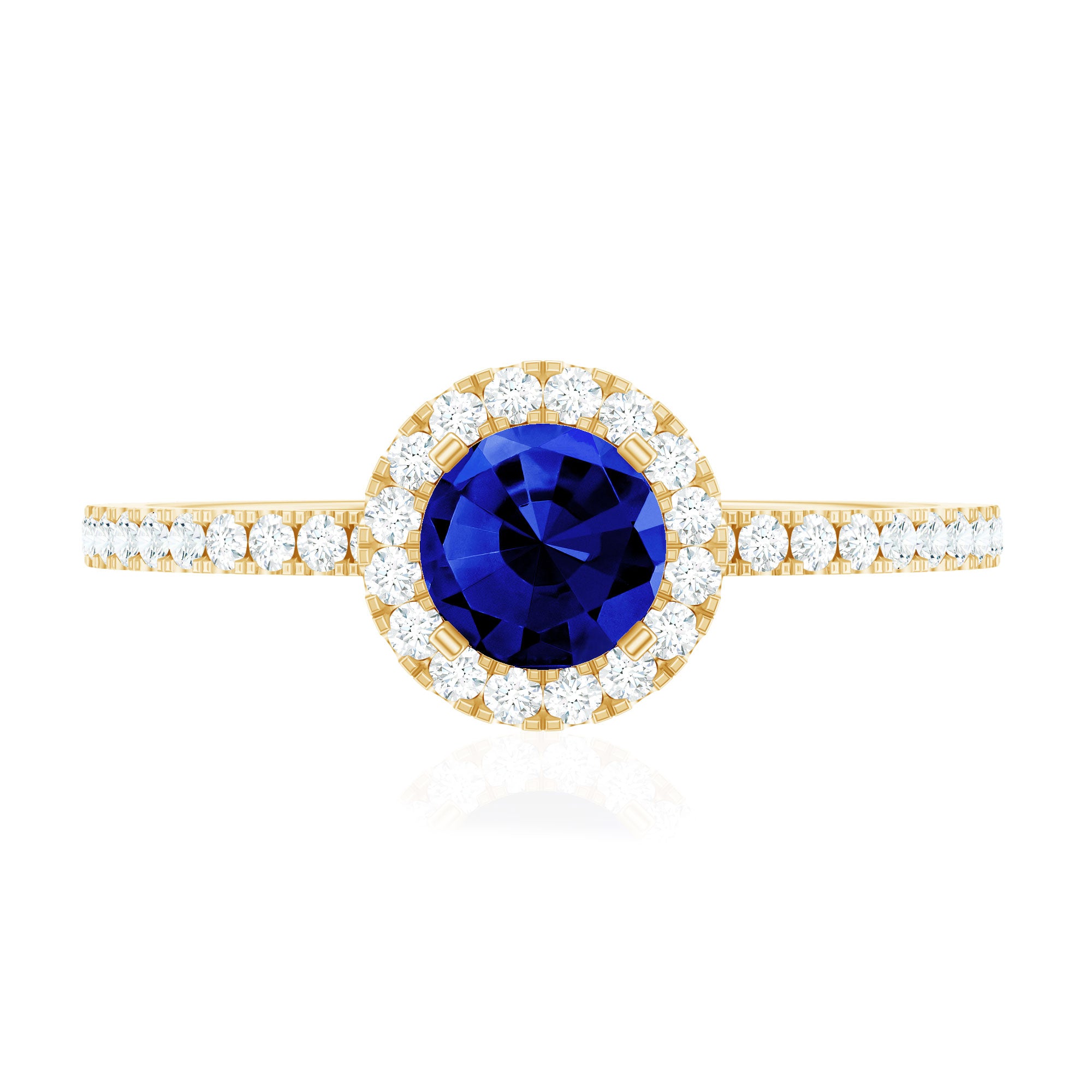 1.25 CT Created Blue Sapphire and Diamond Engagement Ring