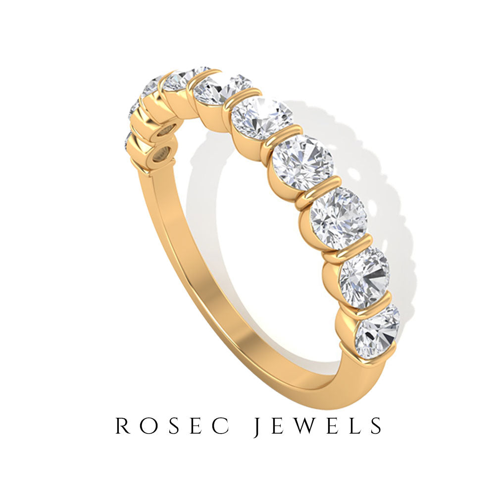 A Stunningly Beautiful and Unique Diamond Ring is adorned with Round Shape Diamond studded on the half band ring. Classic Diamond Eternity Ring is crafted in 14K Gold. A gorgeous ring is a perfect gift for loved ones.