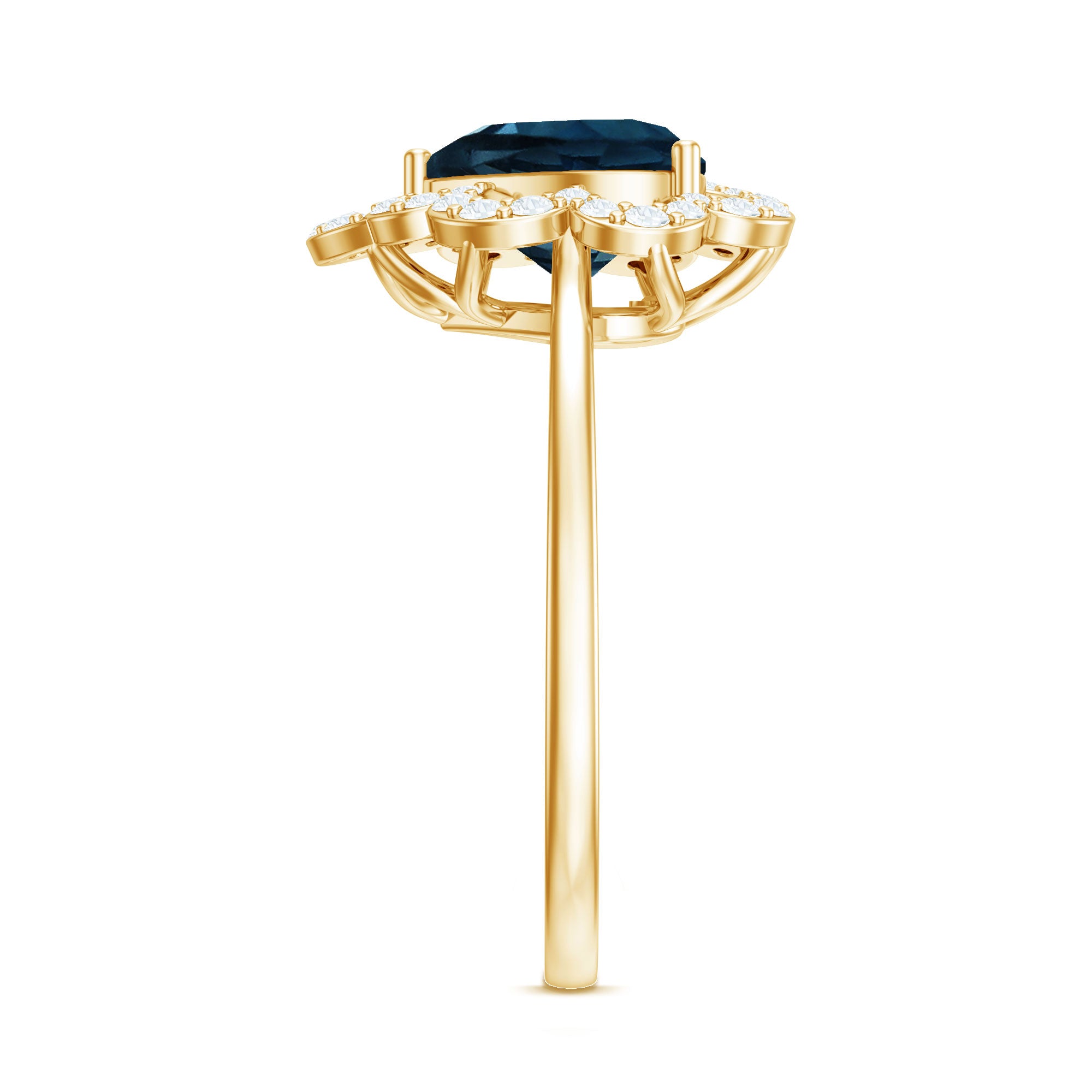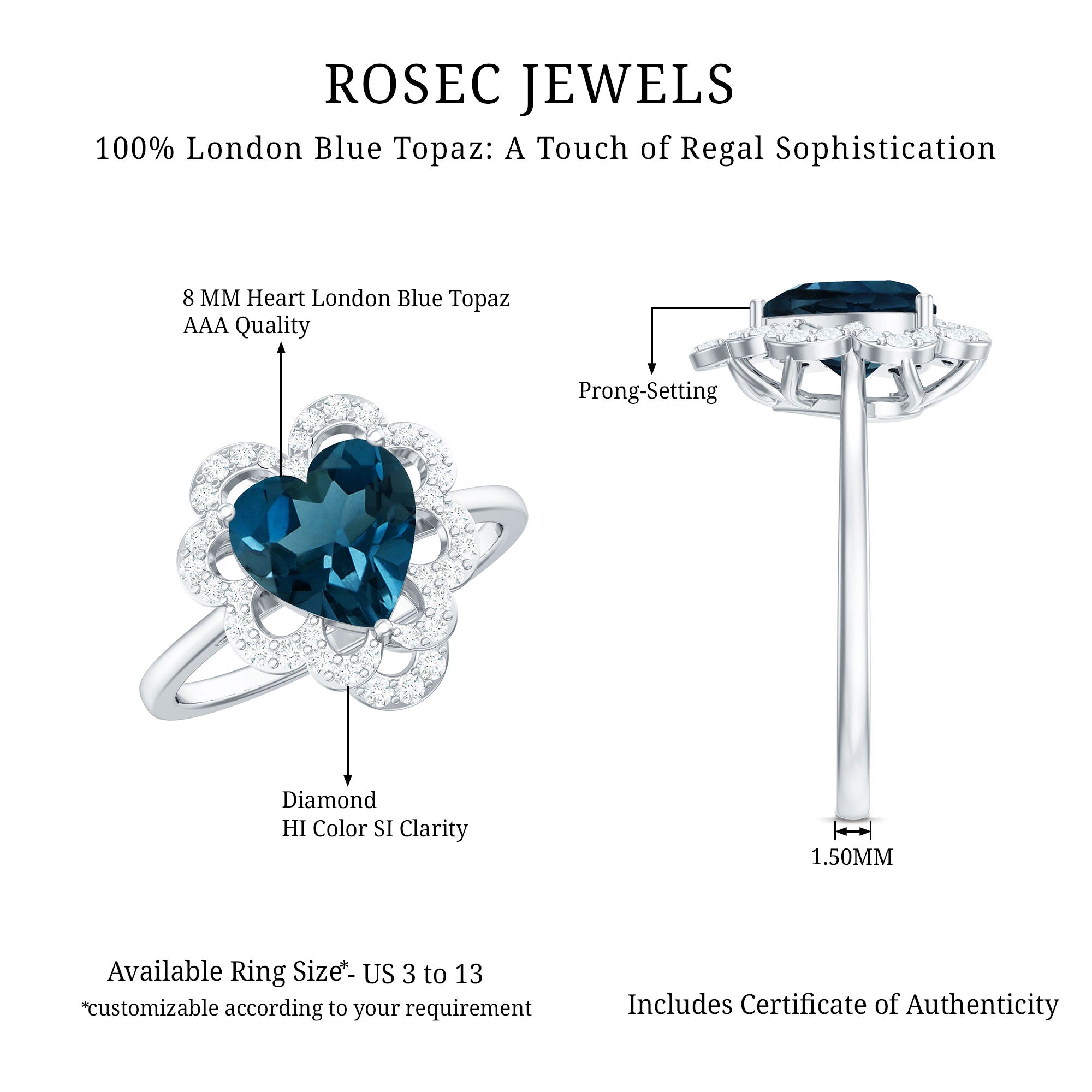 8mm Heart Shape London Blue Topaz Designer Engagement Ring with Diamond Halo