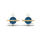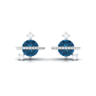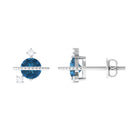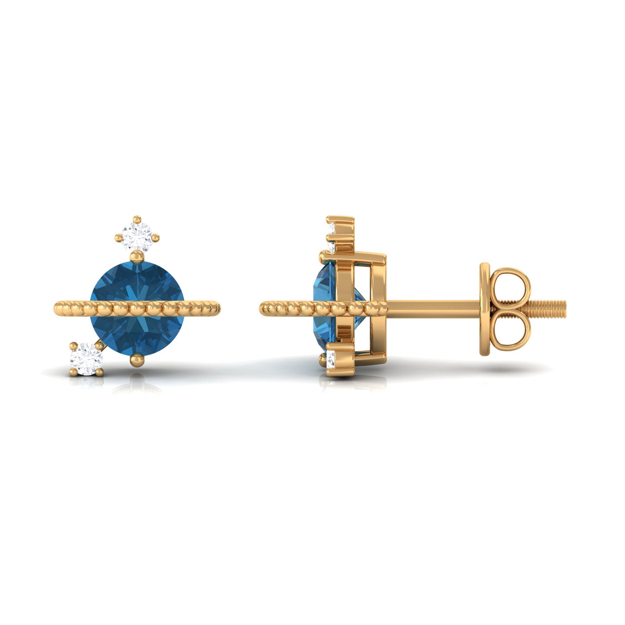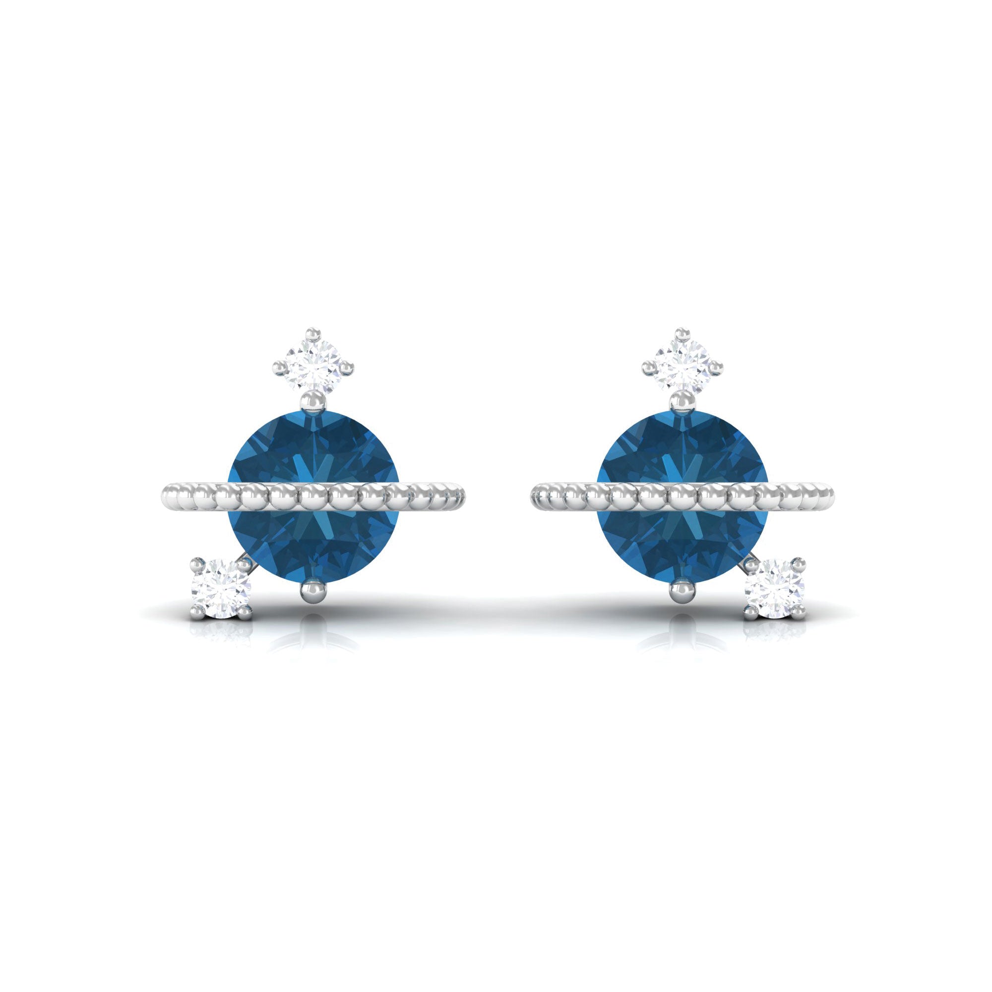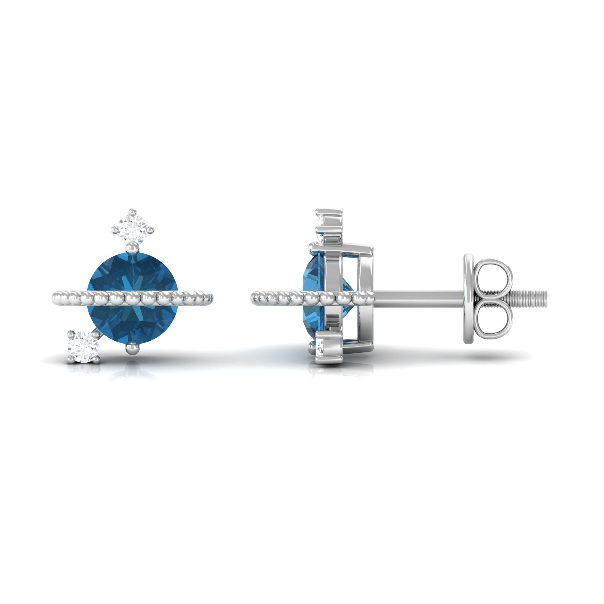 Elevate your look with these Celestial Stud Earrings adorned with a 5 MM Round Shape London Blue Topaz and Round Brilliant Diamond. These Beaded Stud Earrings are exquisitely crafted for a touch of elegance and glamour.