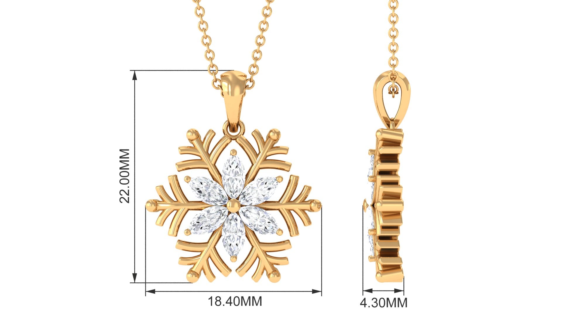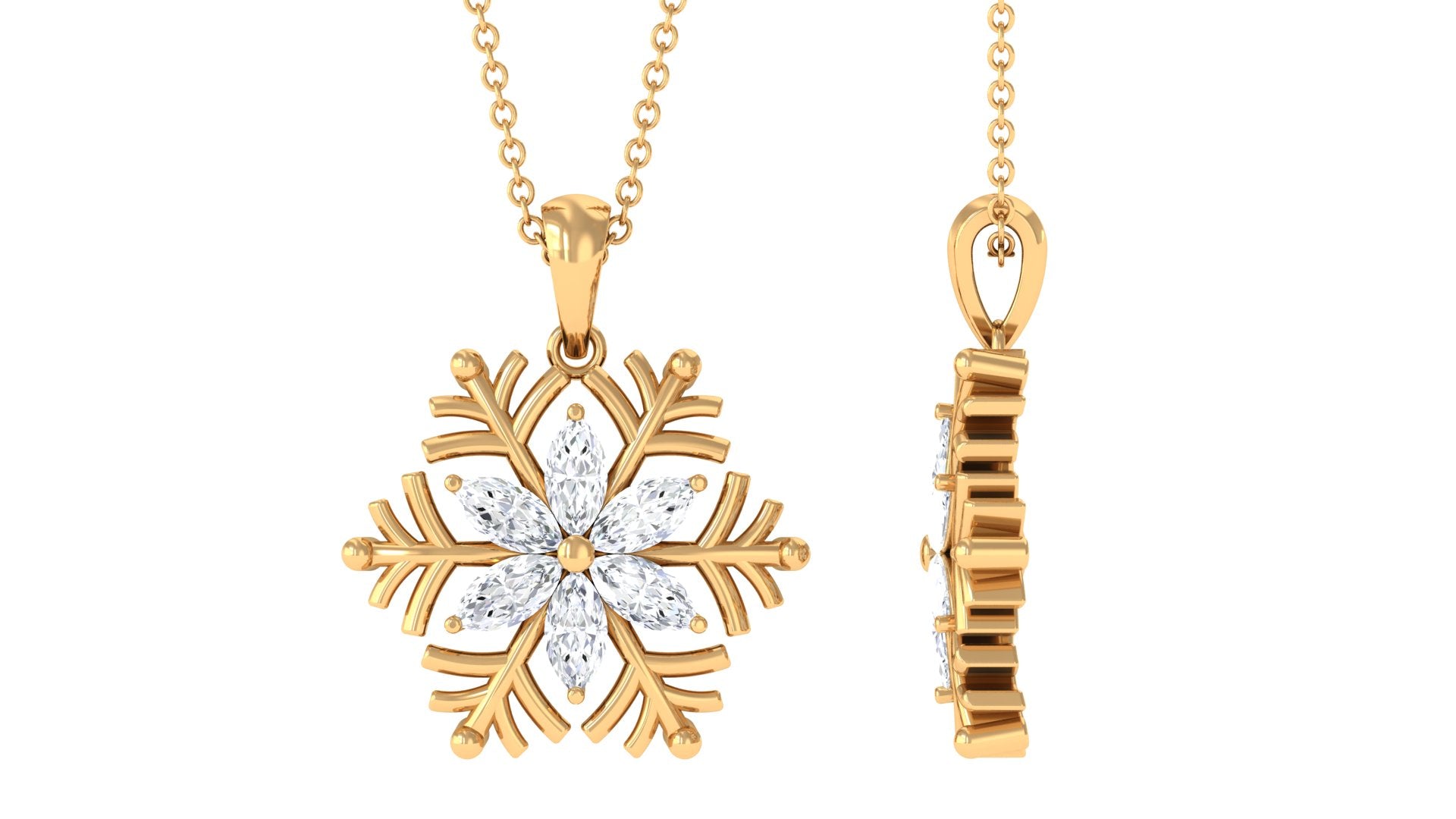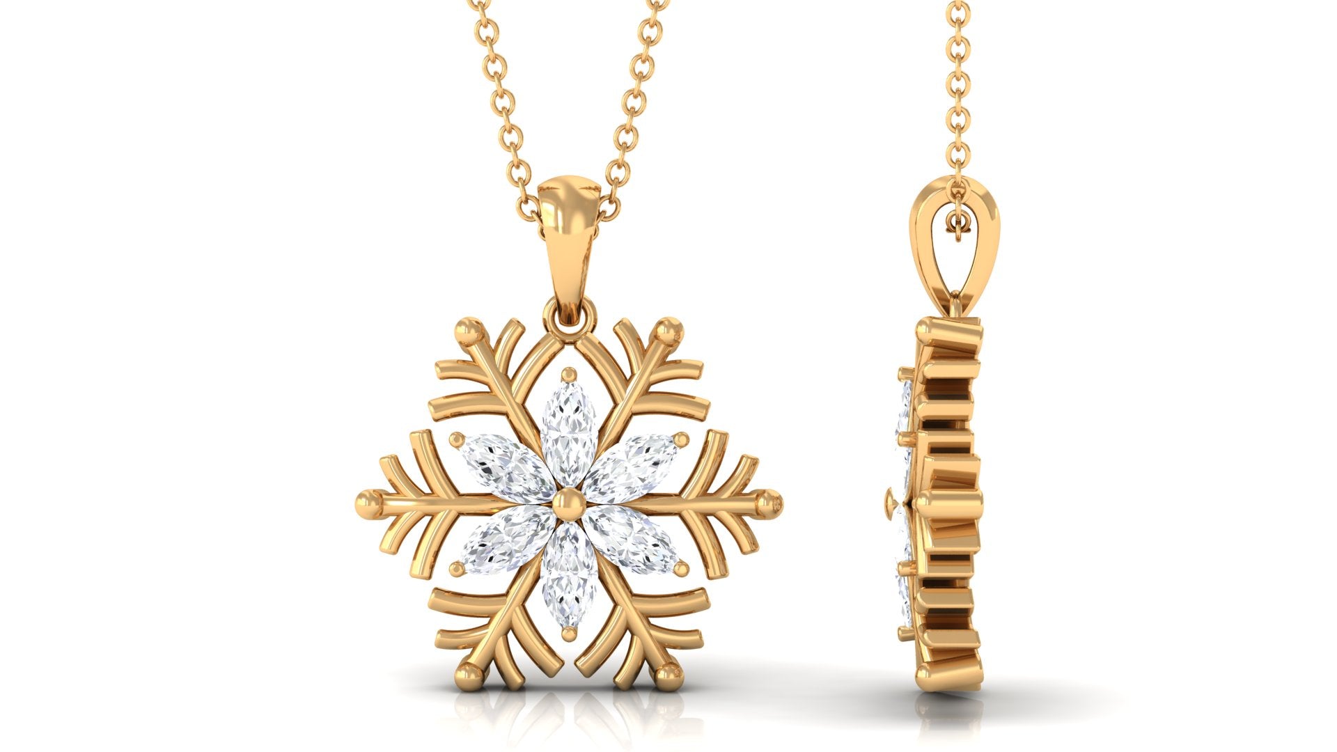 Elevate your style for special occasions with our charming gold snowflake necklace. Sparkling marquise-cut Moissanite adds a touch of elegance.