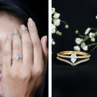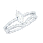 Bridal Ring Set is embellished with Marquise Cut Zircon, held in 2 Prong Setting beautifully and other zircon are arranged as side stones. The other chevron band is accentuated with zircon as well. This Cubic Zirconia Ring Set is an alluring piece of fine jewelry. Get it for your lady and win her heart.