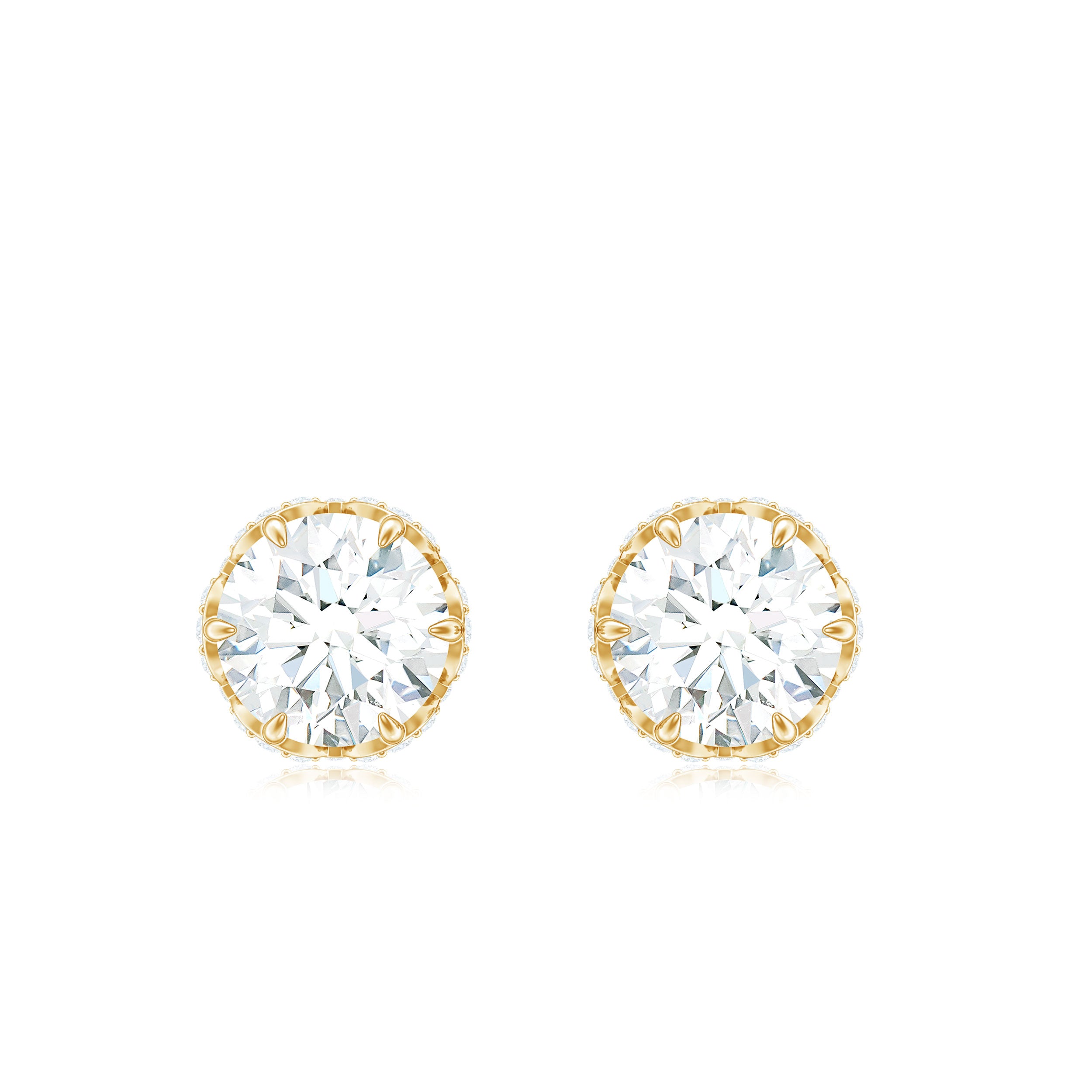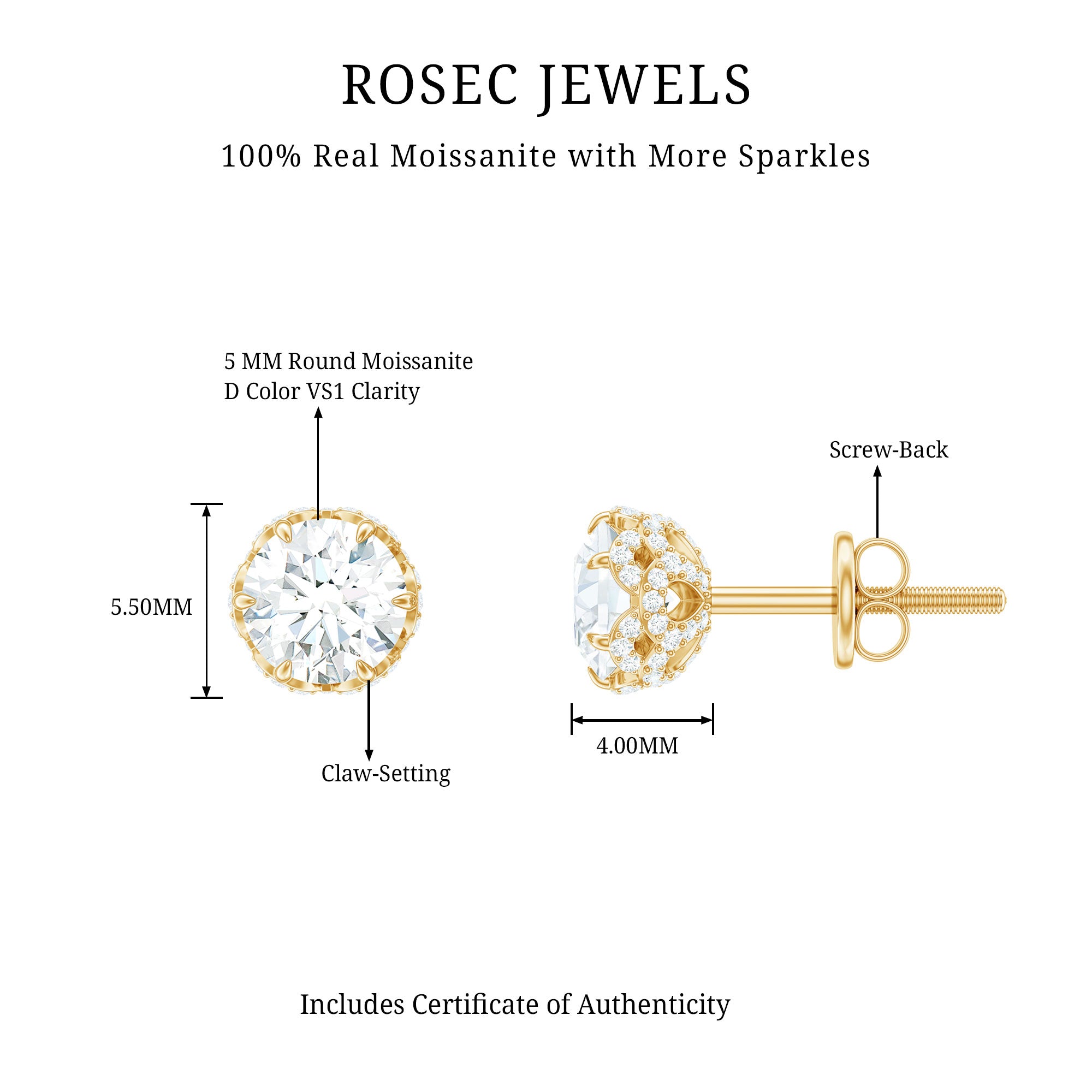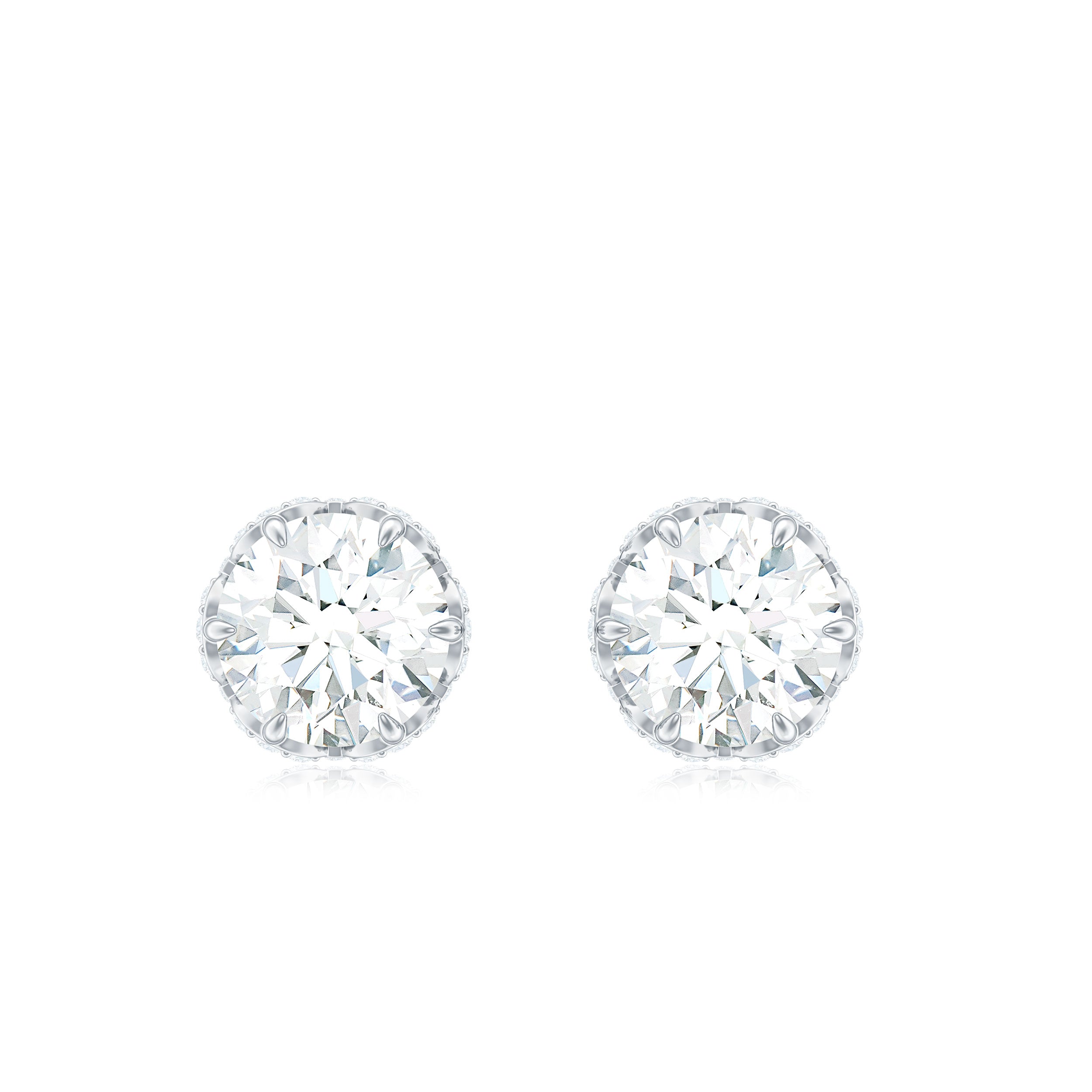 Celebrate your big day by wearing these beautiful Solitaire Stud Earrings and make your evening memorable. These Decorative Stud Earrings are perfectly adorned with Round Cut Moissanite set as Solitaire in a Prong Setting and also Round Cut Moissanite set in a Decorative Setting.