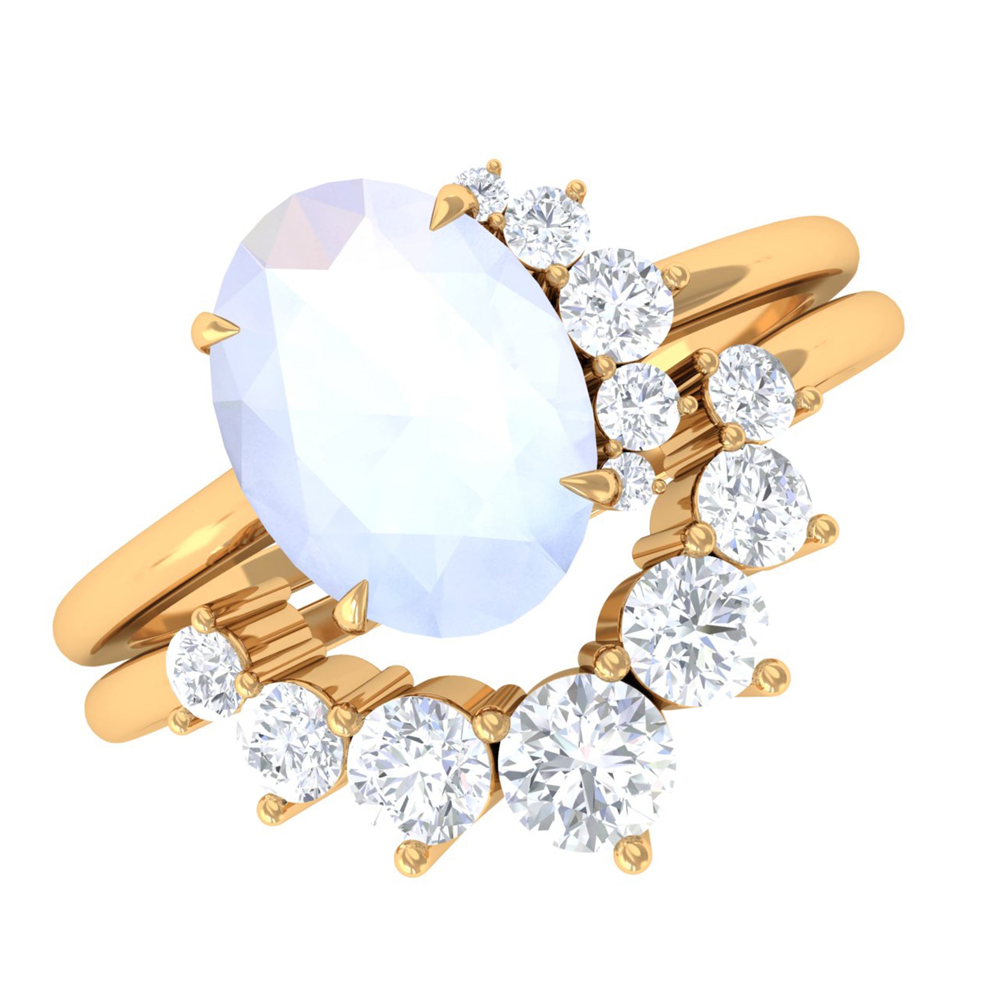 1.25 CT Moonstone and Diamond Engagement Enhancer Ring Set