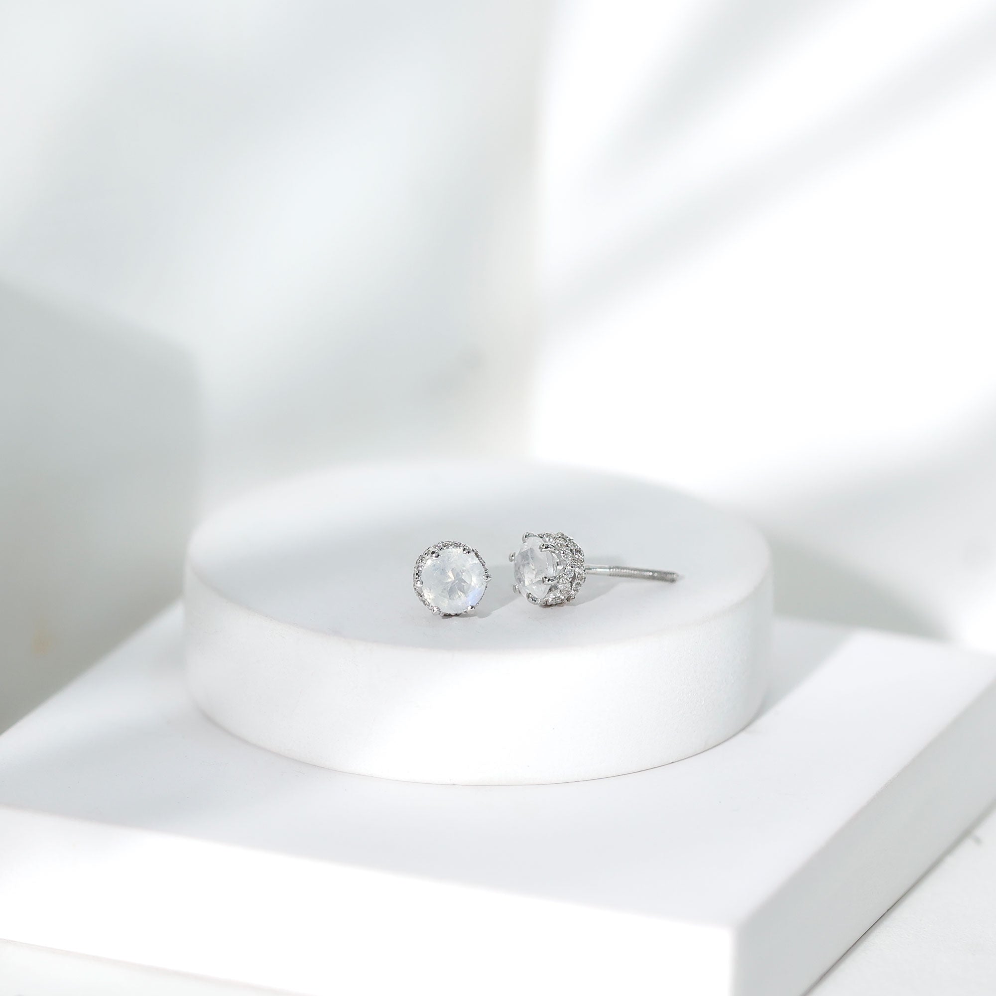 1.25 CT Moonstone Solitaire and Diamond Stud Earrings