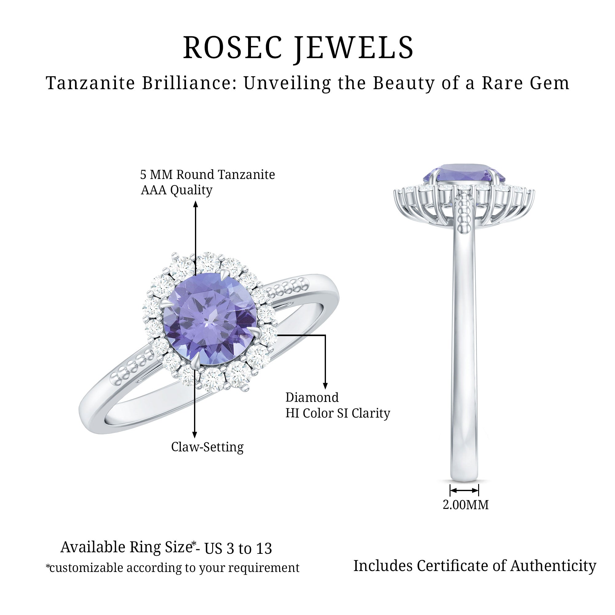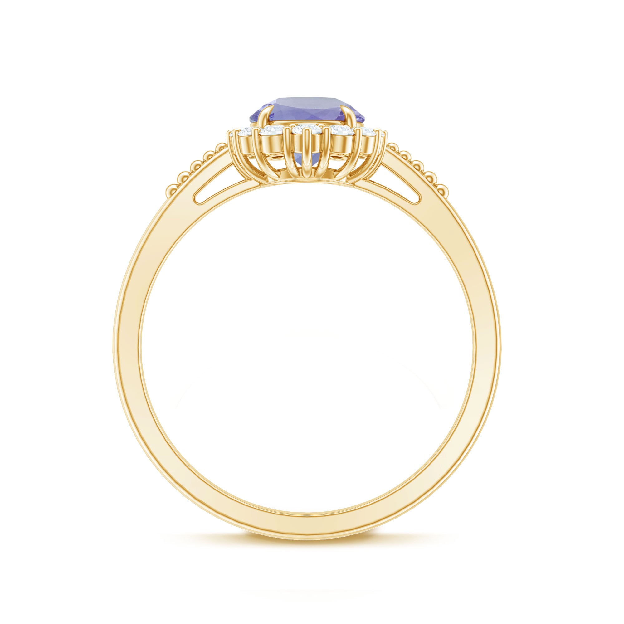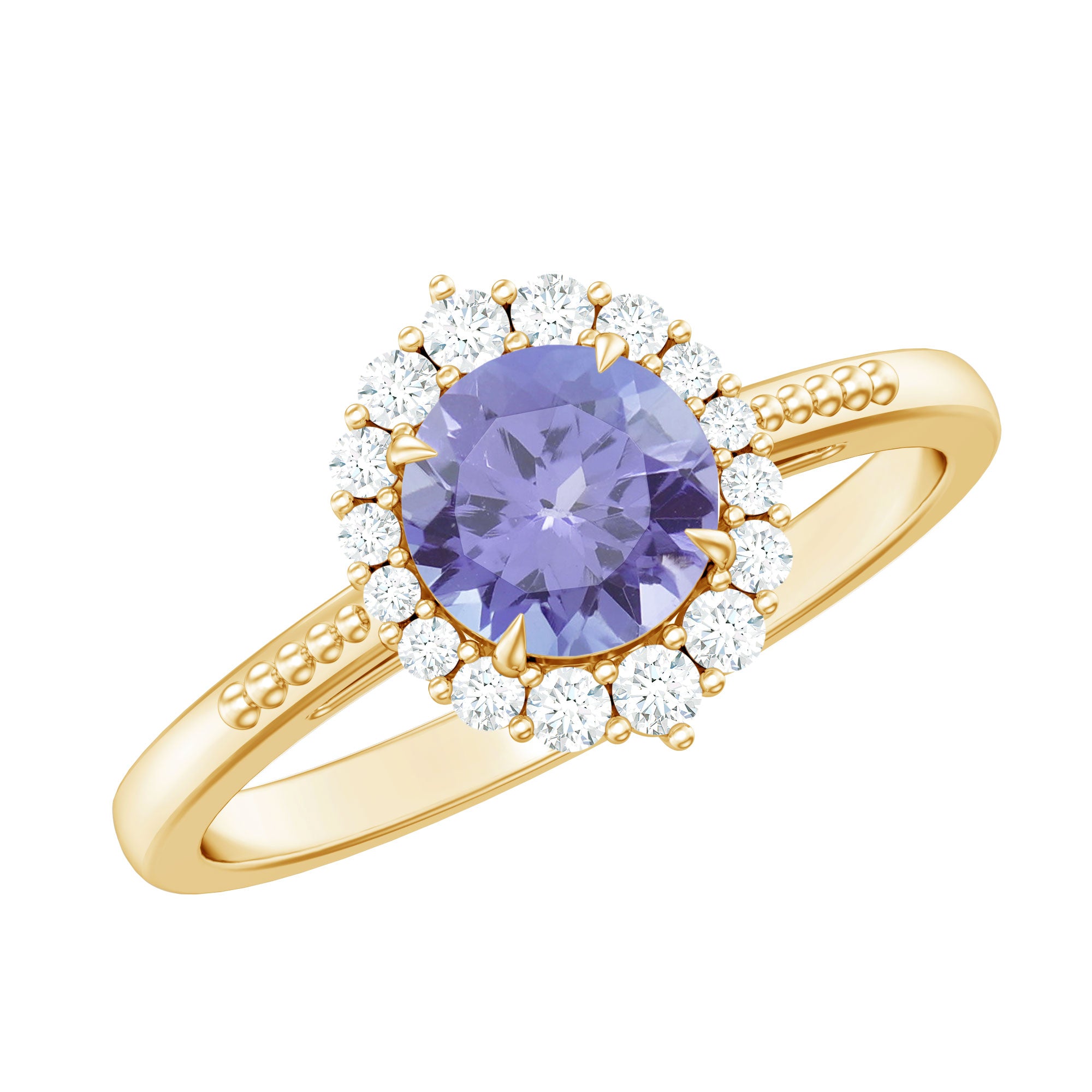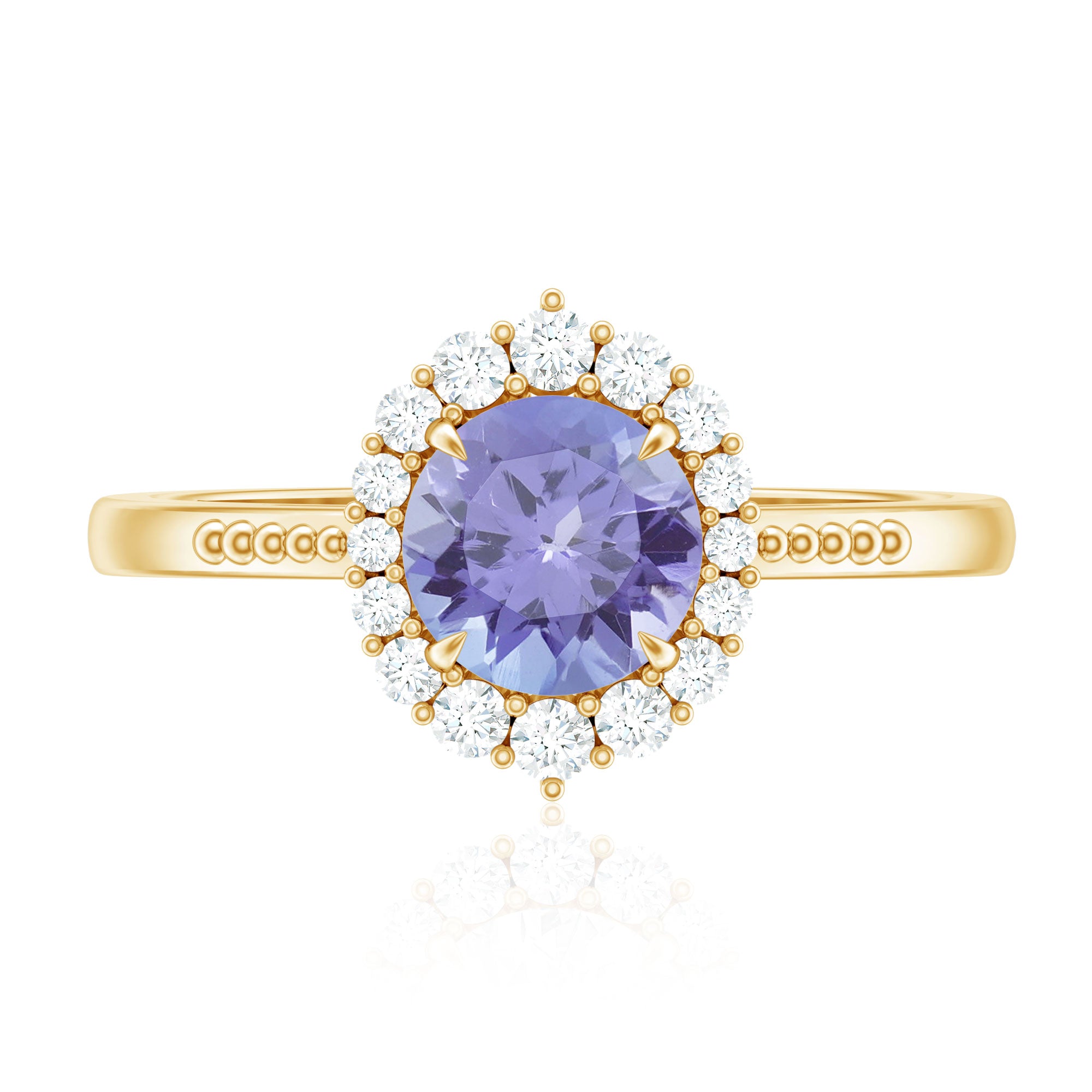 Tanzanite Engagement Ring has an extraordinary sparkle because of its Blue hue, having Round Diamond Halo to add more charm to the wearer. This December Birthstone Ring is crafted in Gold for enchanting appeal. Make your special one feel elated with this perfect Tanzanite Gold Ring.