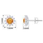 1.25 CT Orange Sapphire Flower Stud Earrings with Diamond Halo
