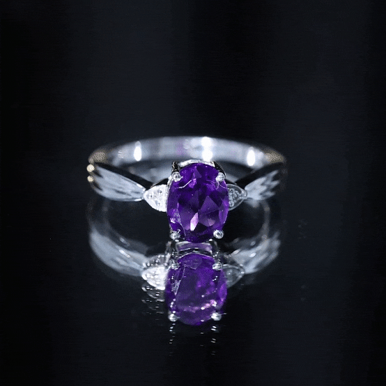 1.25 CT Oval Cut Amethyst Solitaire Ring with Diamond