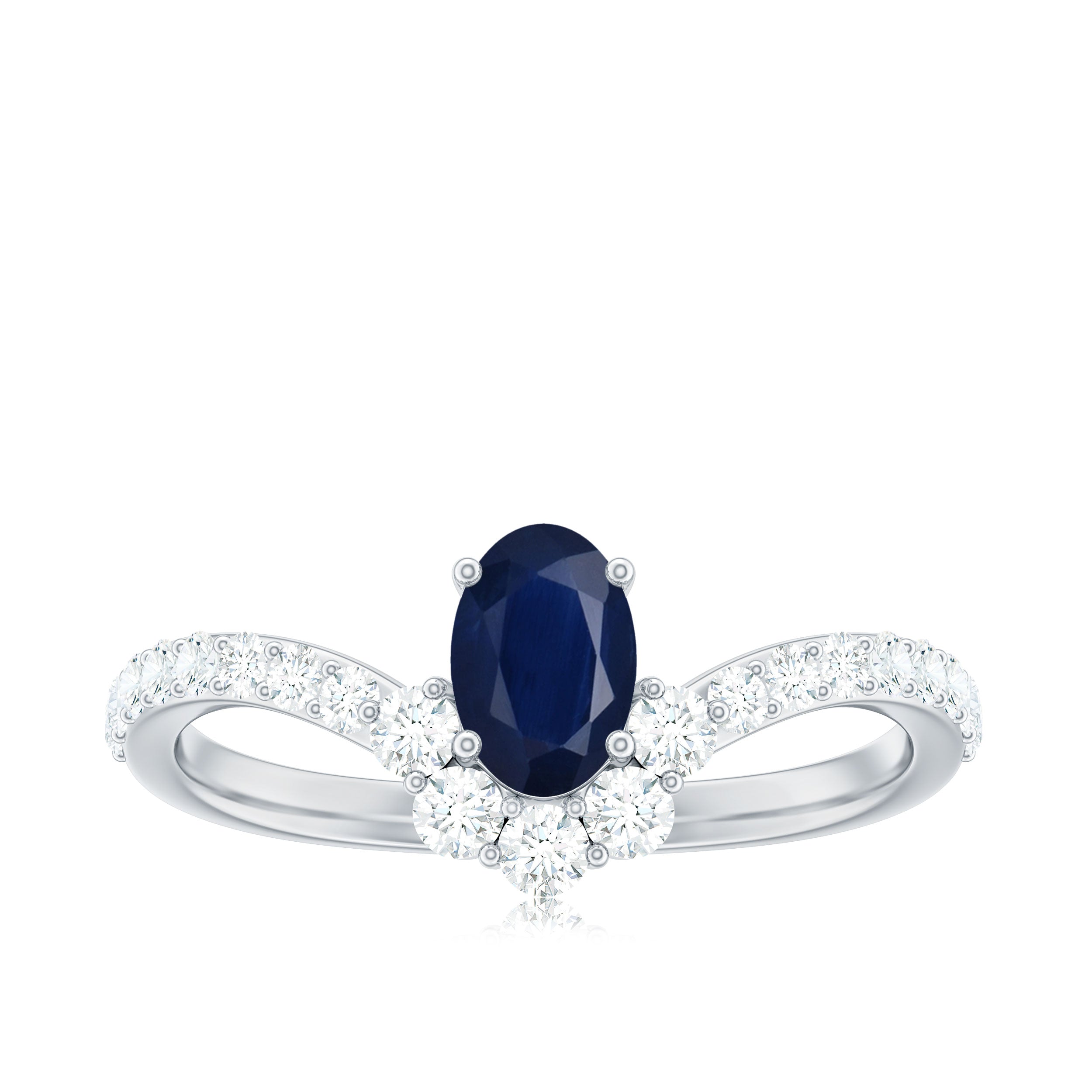 1.25 CT Oval Cut Blue Sapphire and Diamond Chevron Ring
