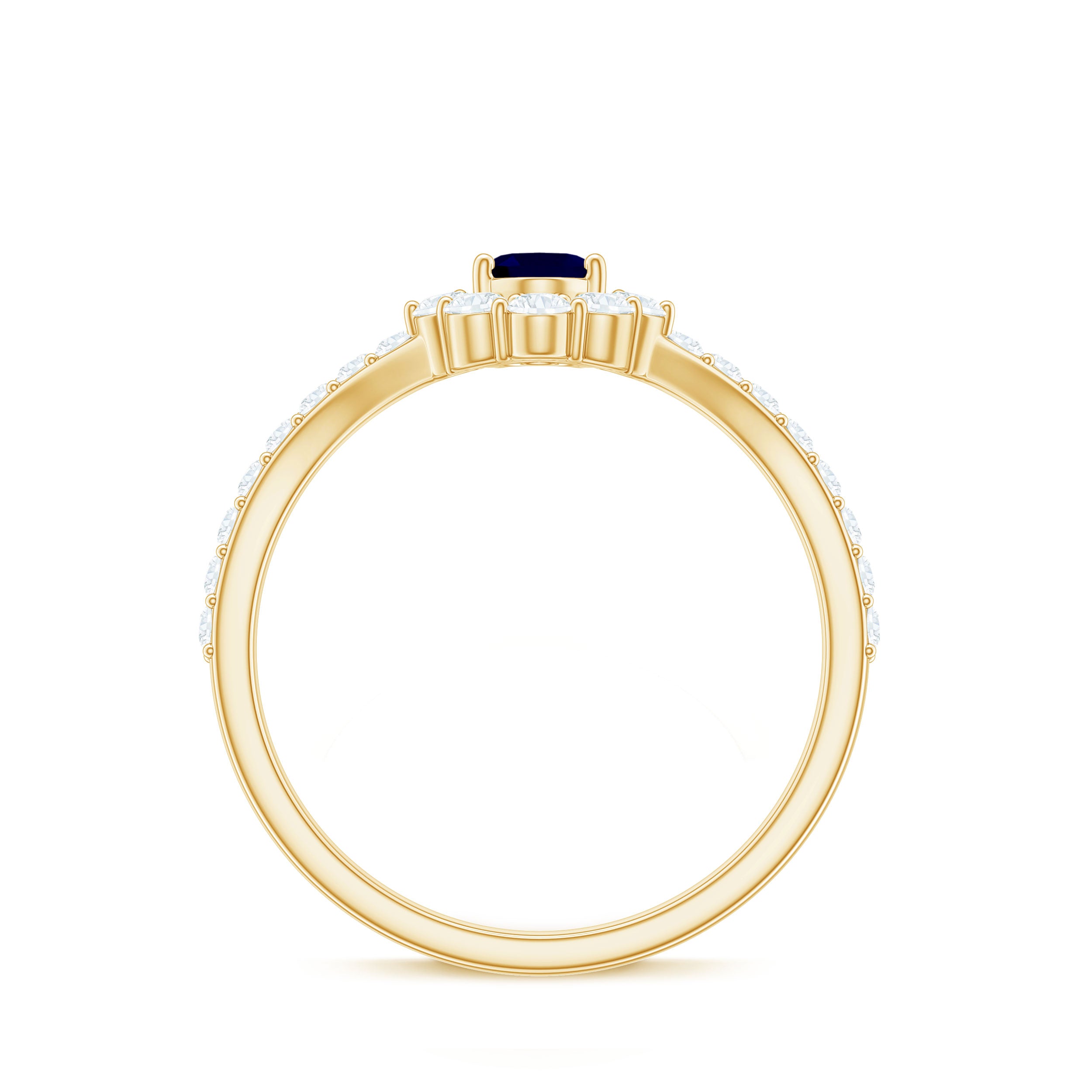 Shine like a Queen with Blue Sapphire Chevron Ring. Embellished with Oval Cut Blue Sapphire Stone on V Shape Gold Ring with Diamond, this Solid Gold Ring is ideal for September born women.