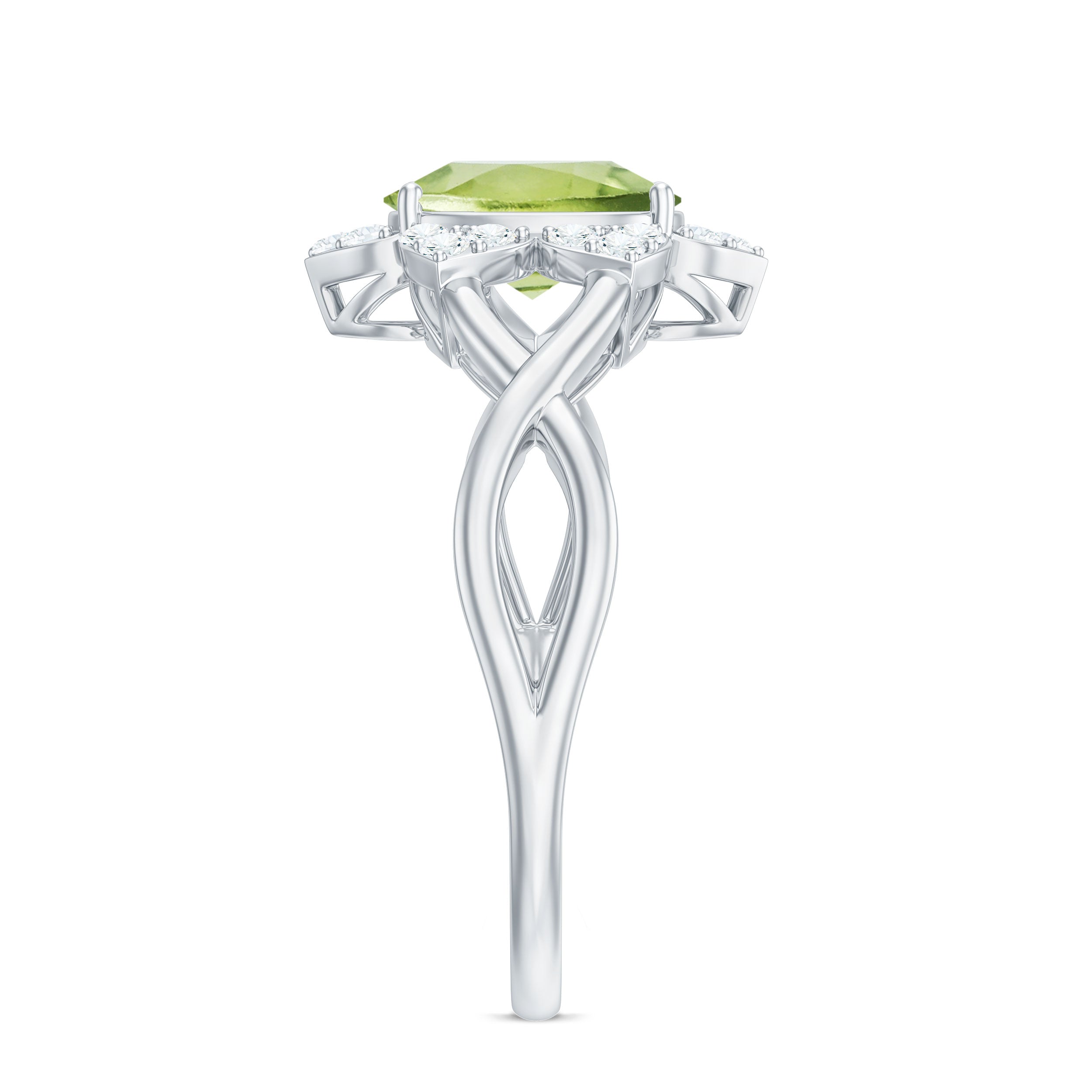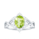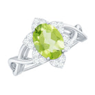 1.25 CT Oval Cut Peridot Solitaire Ring with Diamond Accent