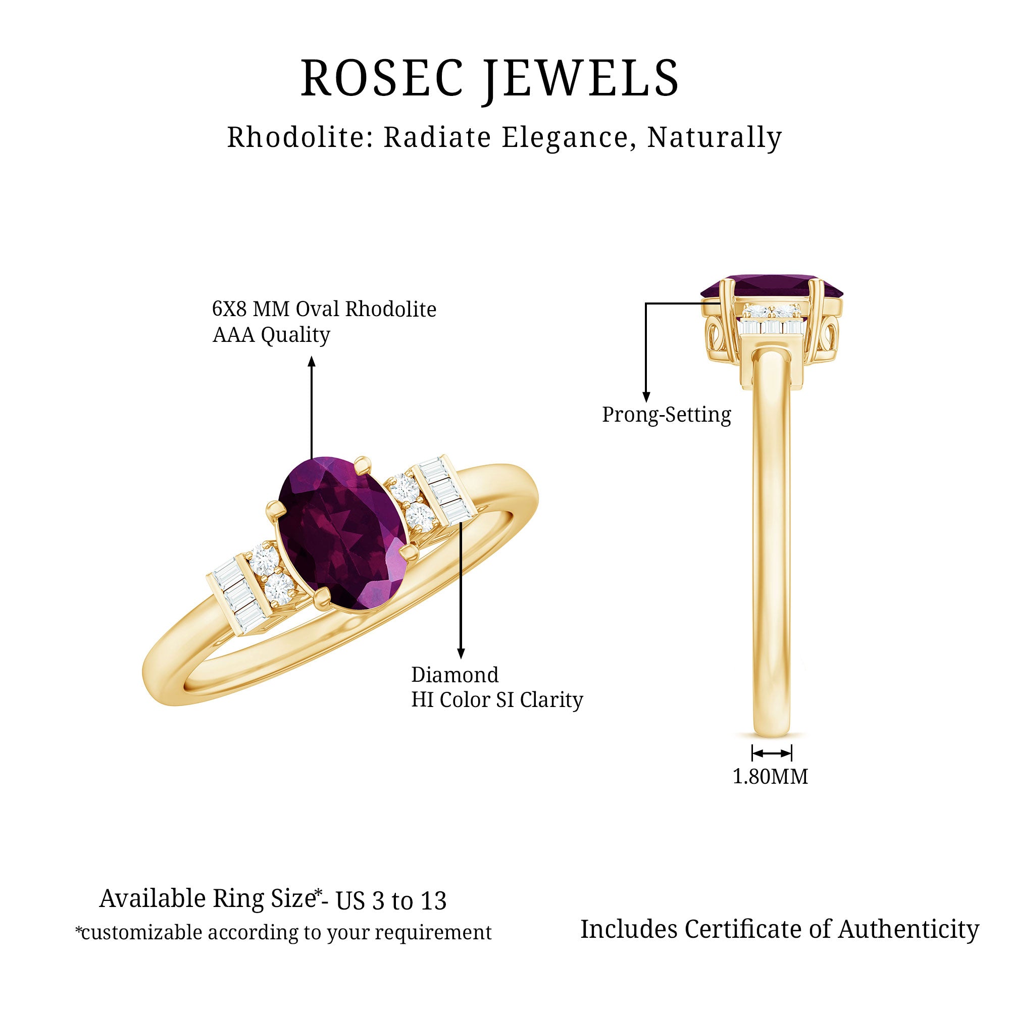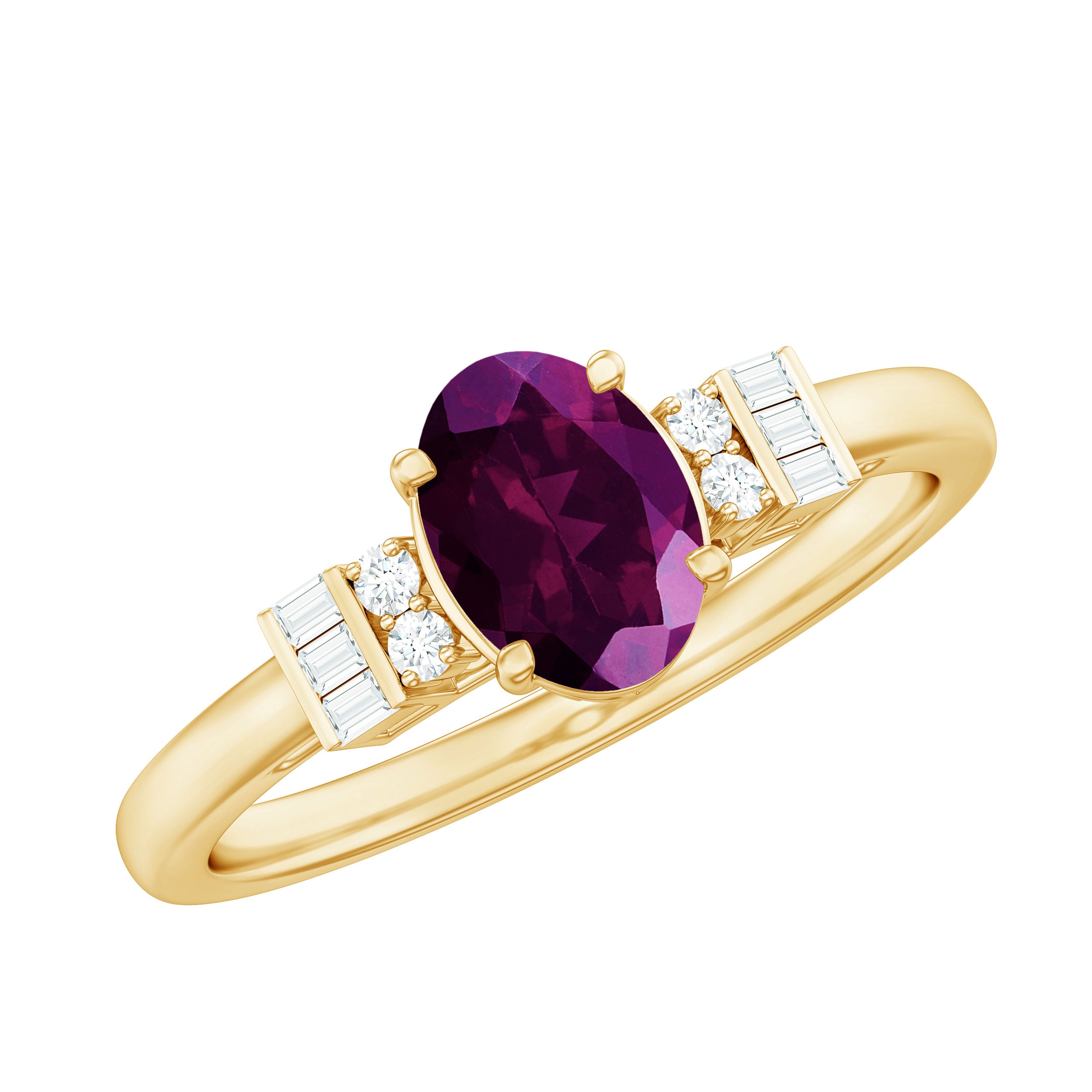1.25 CT Oval Rhodolite Classic Engagement Ring with Diamond Accent