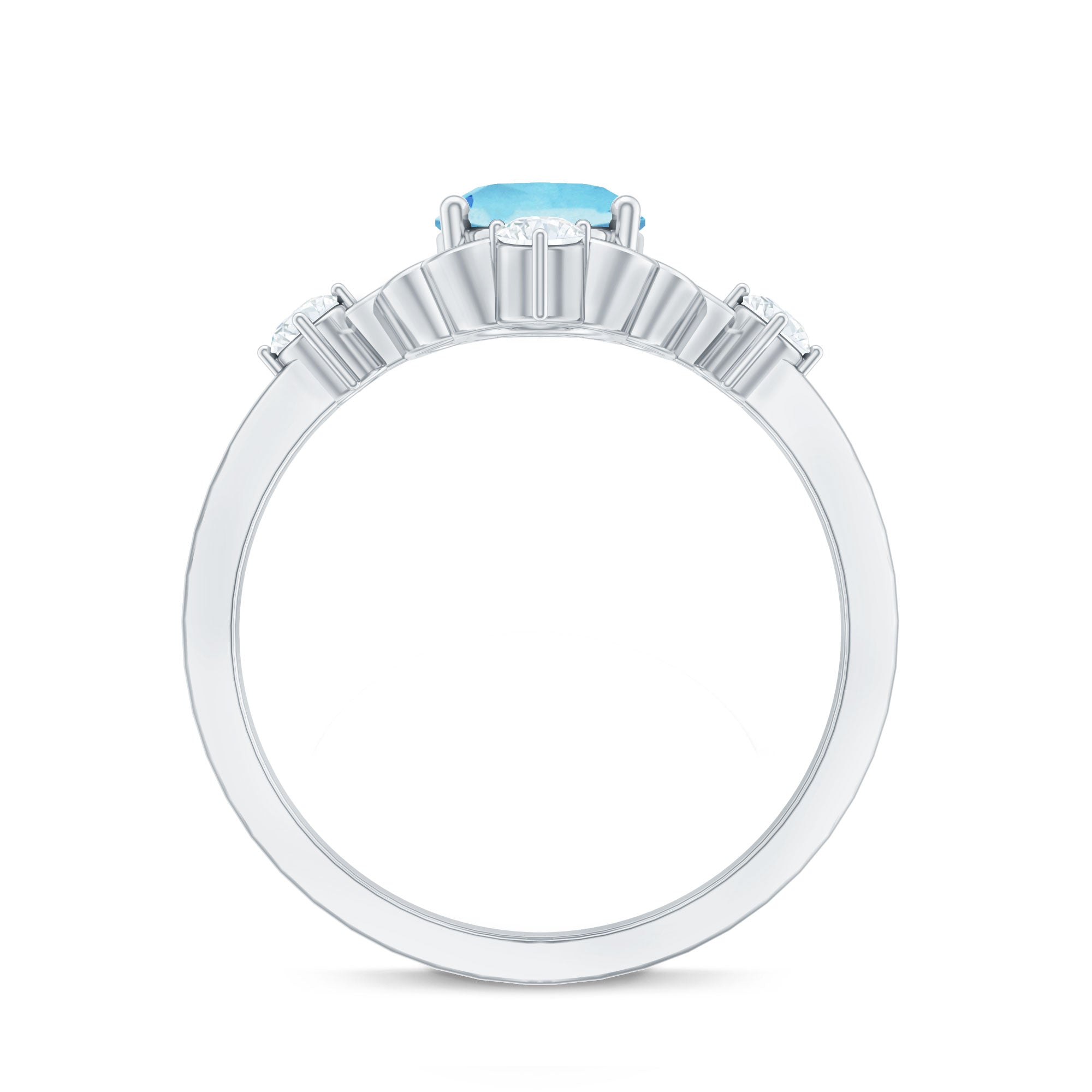 1.25 CT Oval Shape Aquamarine and Diamond Cocktail Ring