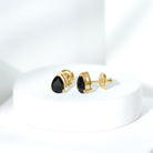 Certified Real Pear Shaped Black Spinel Earrings with Screw Back