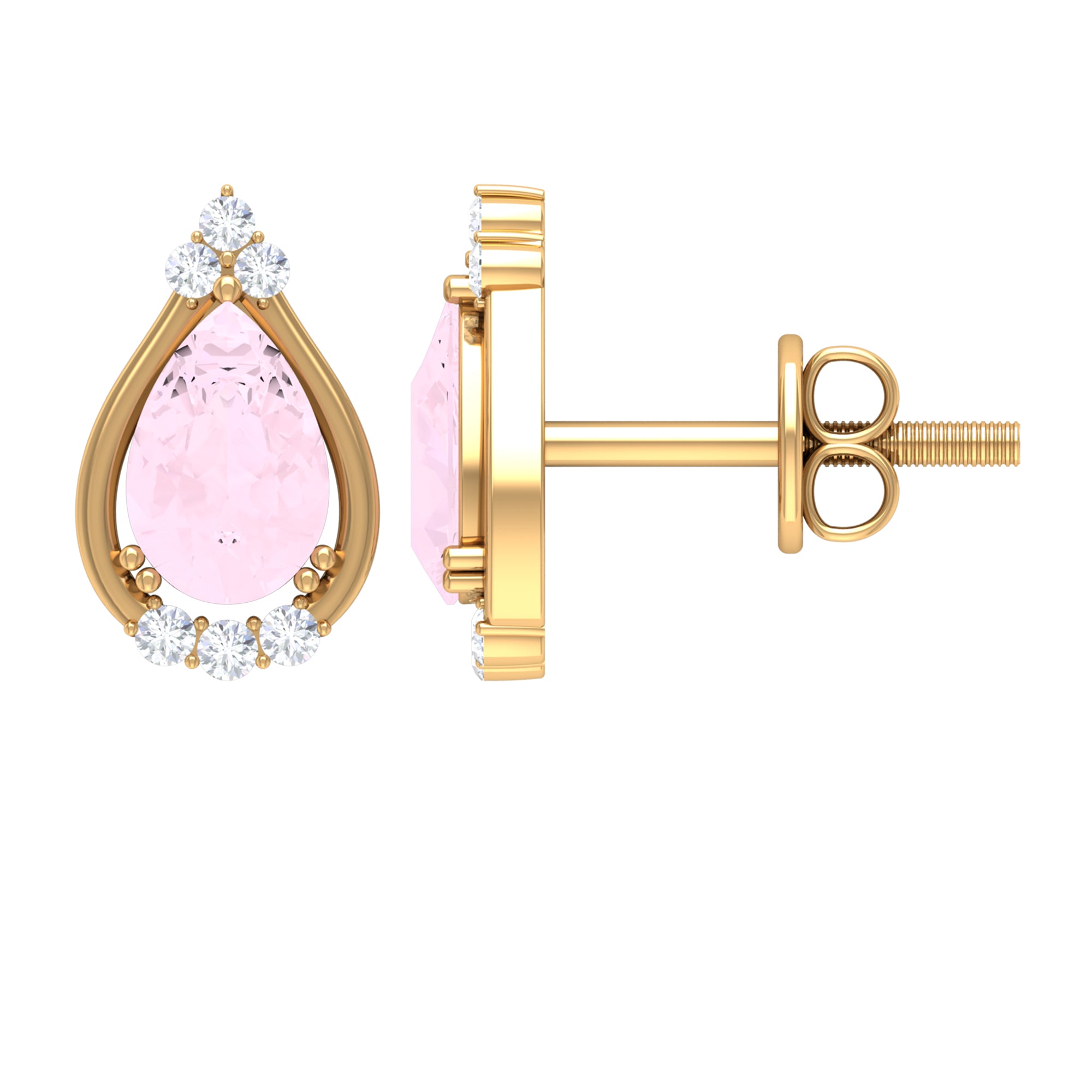 1.25 CT Pear Cut Rose Quartz Teardrop Stud Earrings with Diamond Accent