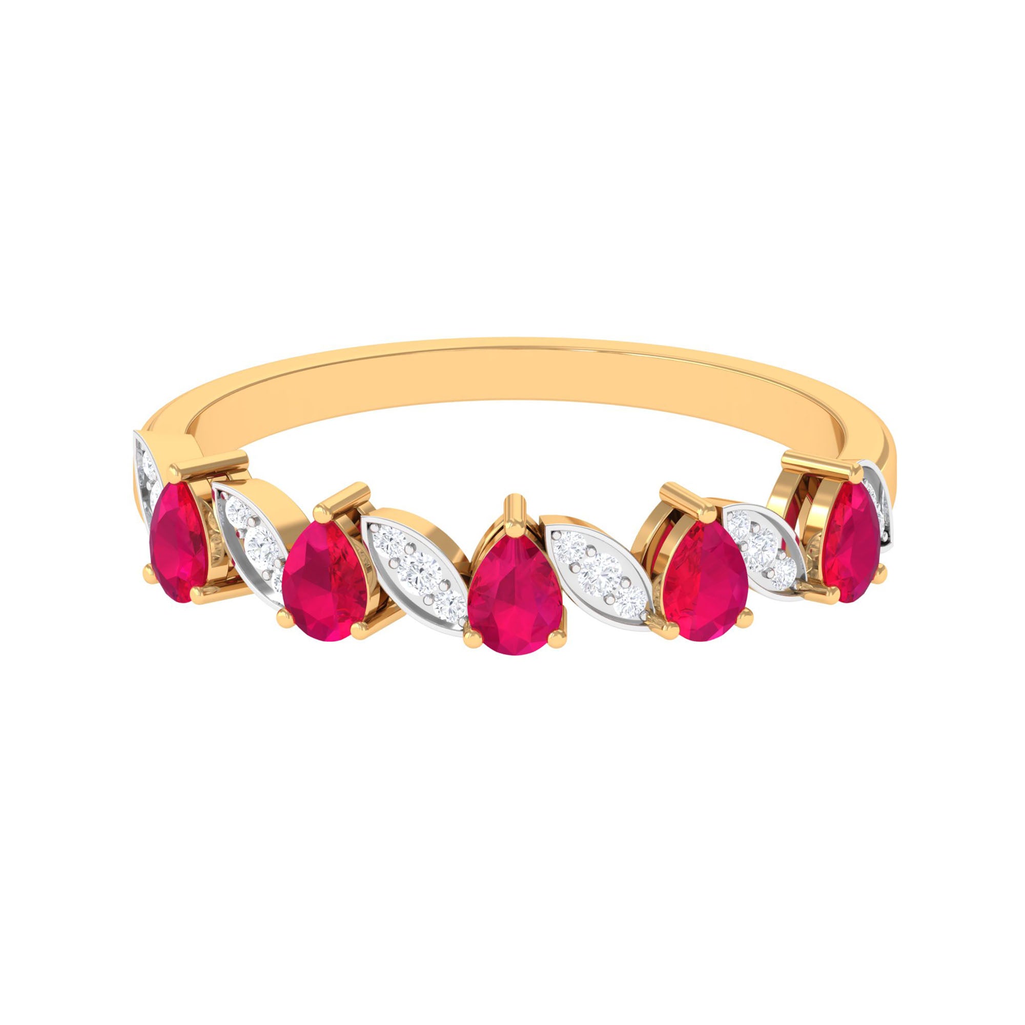 1.25 CT Pear Ruby Half Eternity Band Ring with Diamond