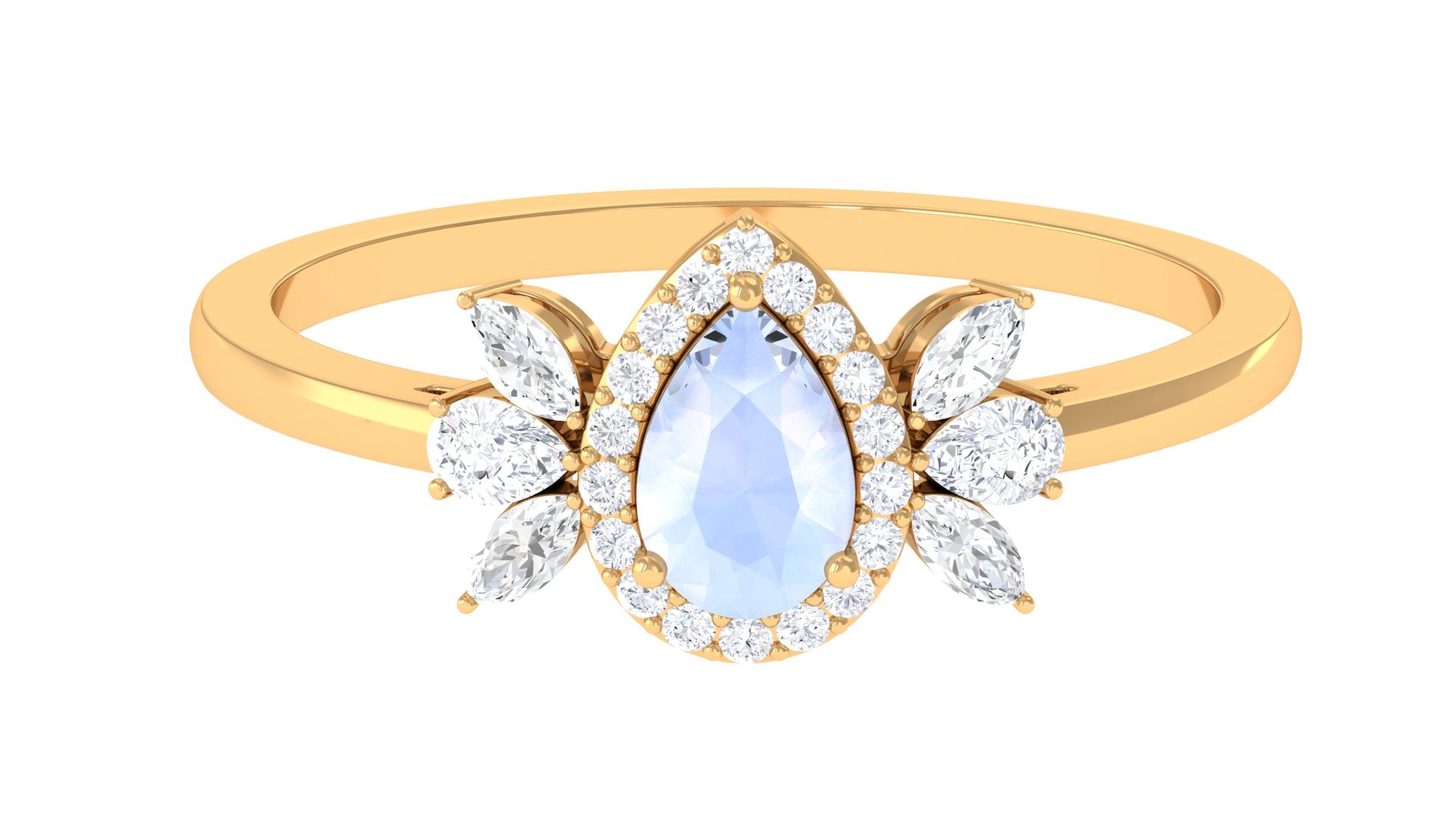 1.25 CT Pear Shape Moonstone Engagement Ring with Diamond Accent