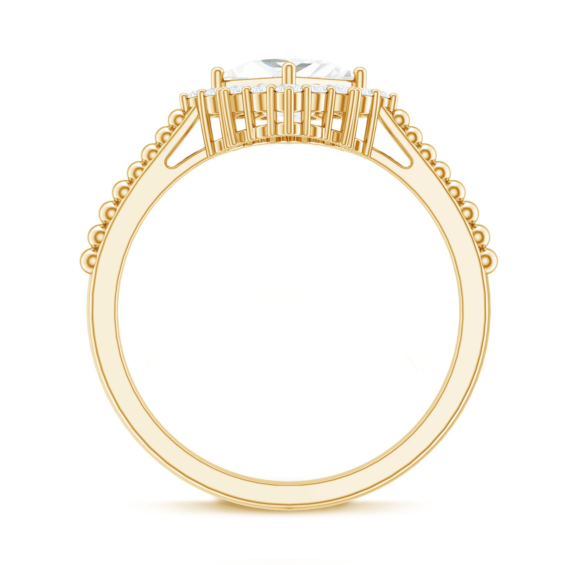True love is expressed in many ways, and a carefully selected ring for your big day is one of the best ways of doing it. This outstanding Moissanite Halo Ring featuring 5 mm tilted Princess Cut Moissanite surrounded by tiny round shape moissanites, enhancing the sparkle of the center stone. This Halo Engagement Ring has beaded embellished shank, which give this piece an antique look. Moissanite has exceptional chemical, physical, and optical properties that closely resemble those of a diamond, giving this ring a brilliant sparkle and radiant look she’s sure to adore. Crafted with meticulous attention to detail, this Moissanite Square Ring is a symbol of strength, unity, and enduring love. Its soft yet daring look makes this Halo Engagement Ring a standout piece that she will wear and adore for a lifetime. Designed for everyday comfort and timeless appeal, this Womens Moissanite Engagement Ring is available in US sizes 3 to 13 to ensure the perfect fit. Whether youre preparing for a heartfelt surprise or a quiet, intimate moment, it comes thoughtfully packaged in a beautiful jewelry box, ready to be treasured from the moment it’s revealed.