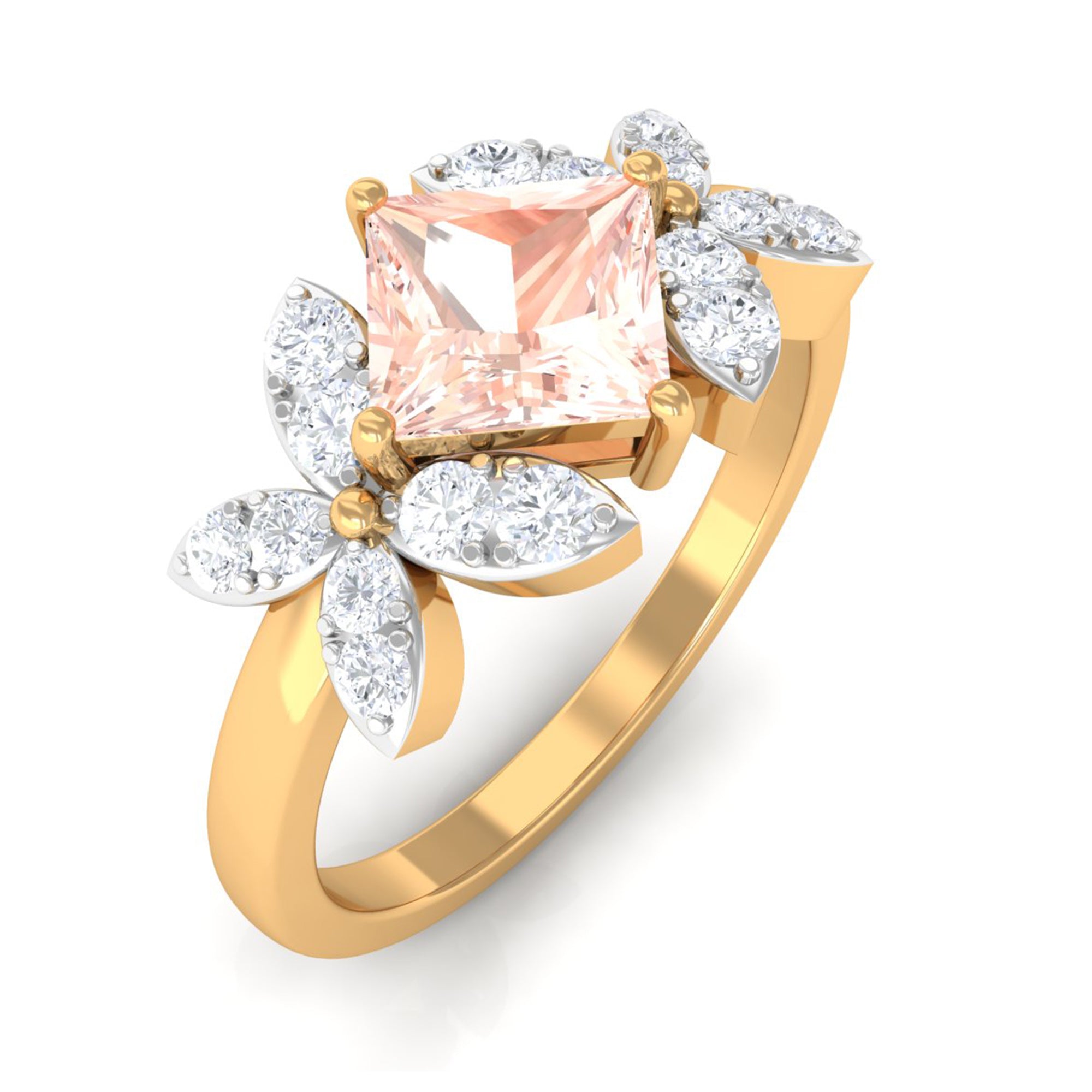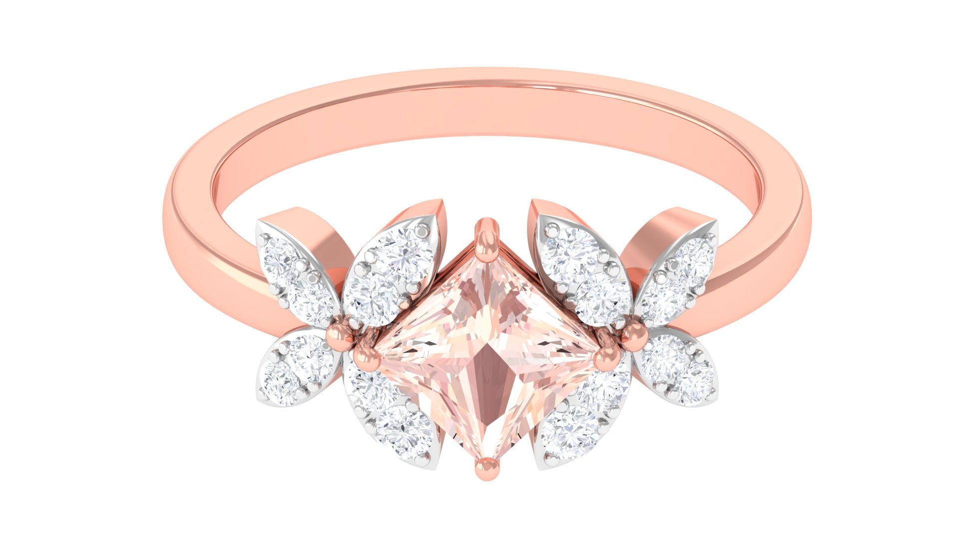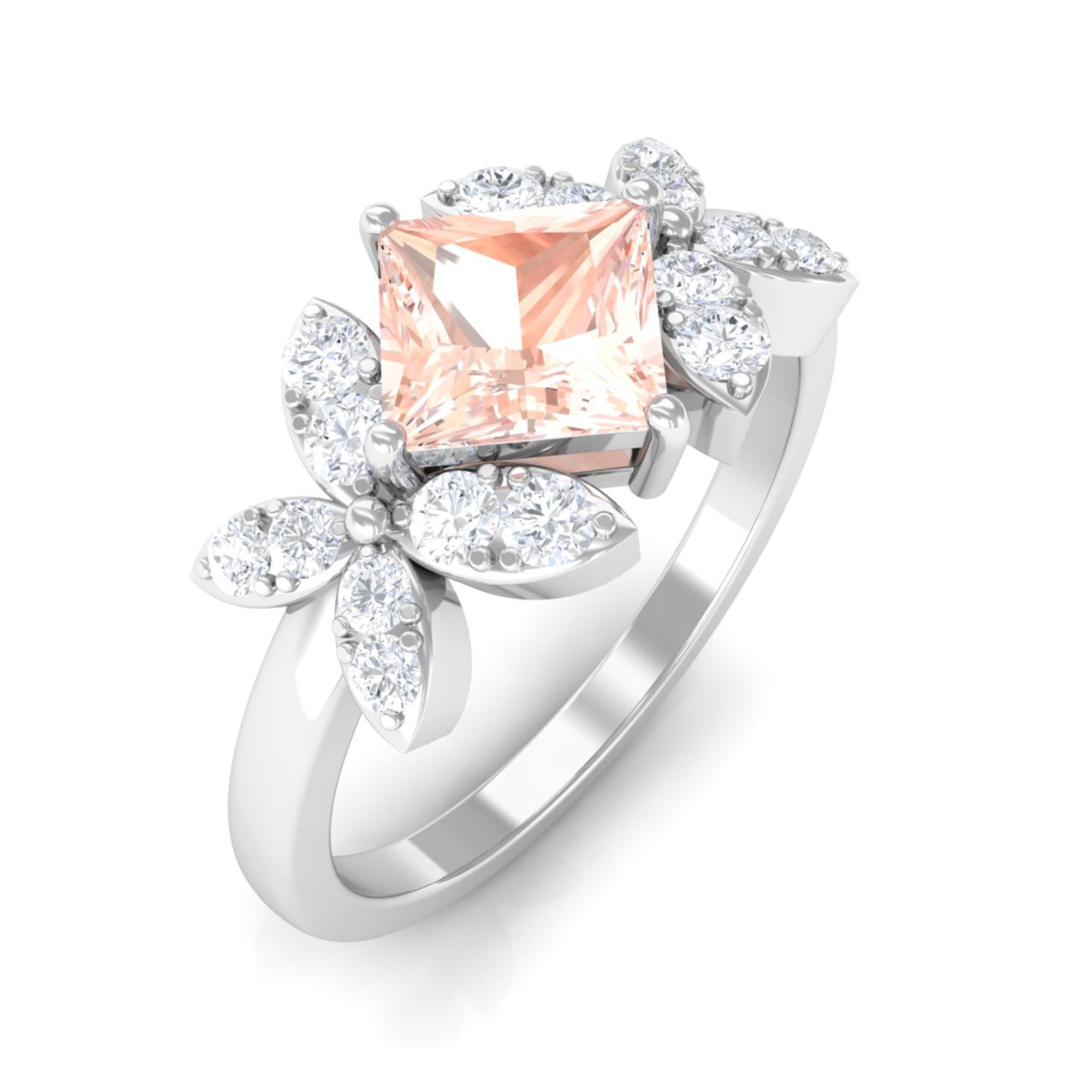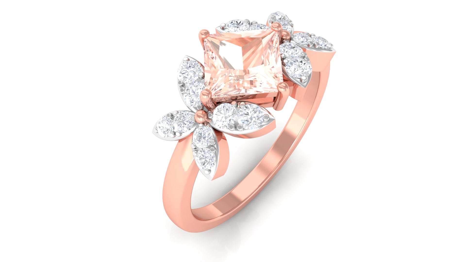 1.25 CT Princess Cut Morganite Floral Engagement Ring with Diamond