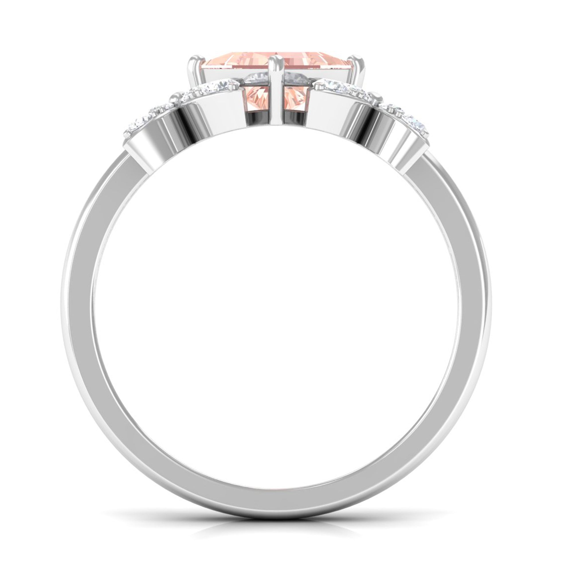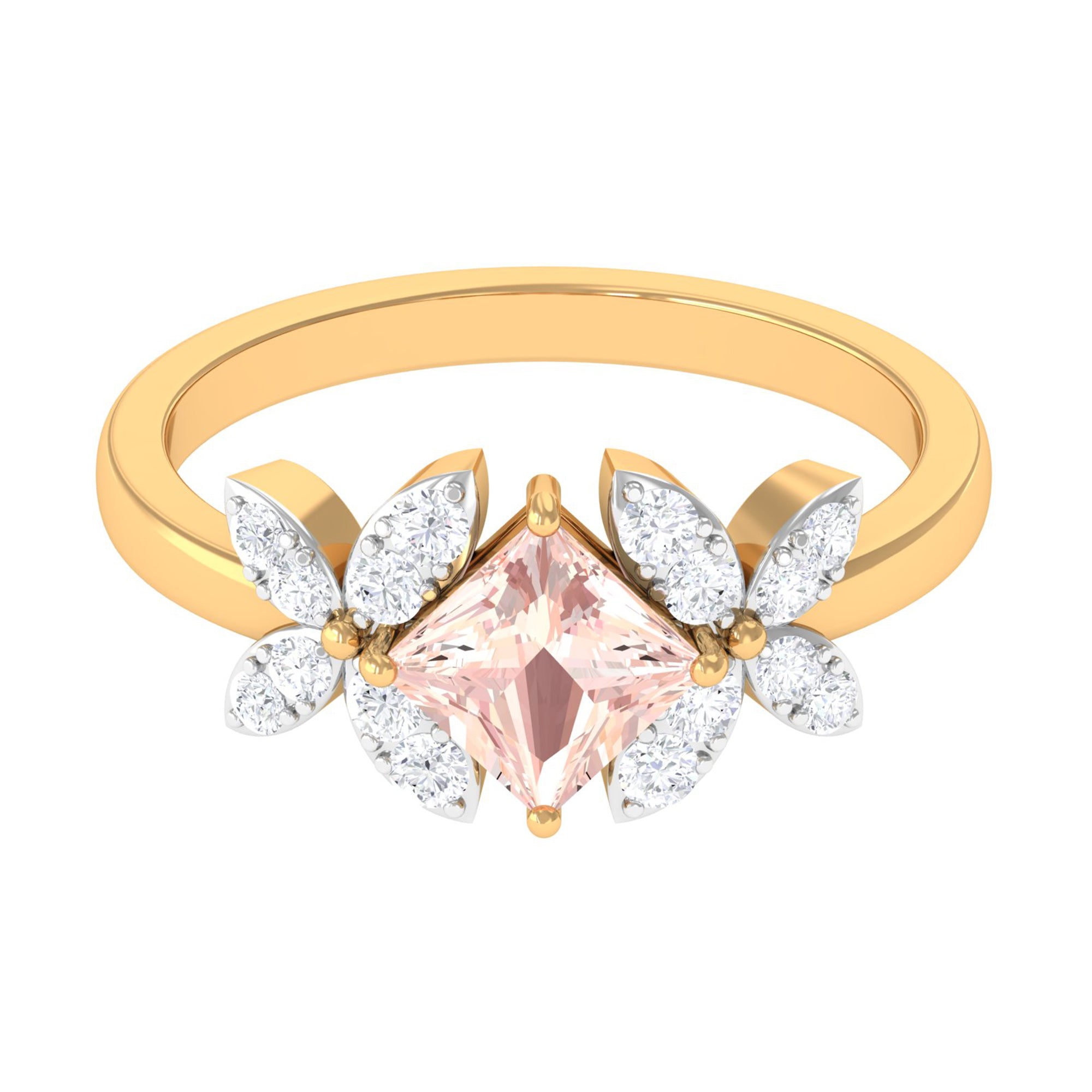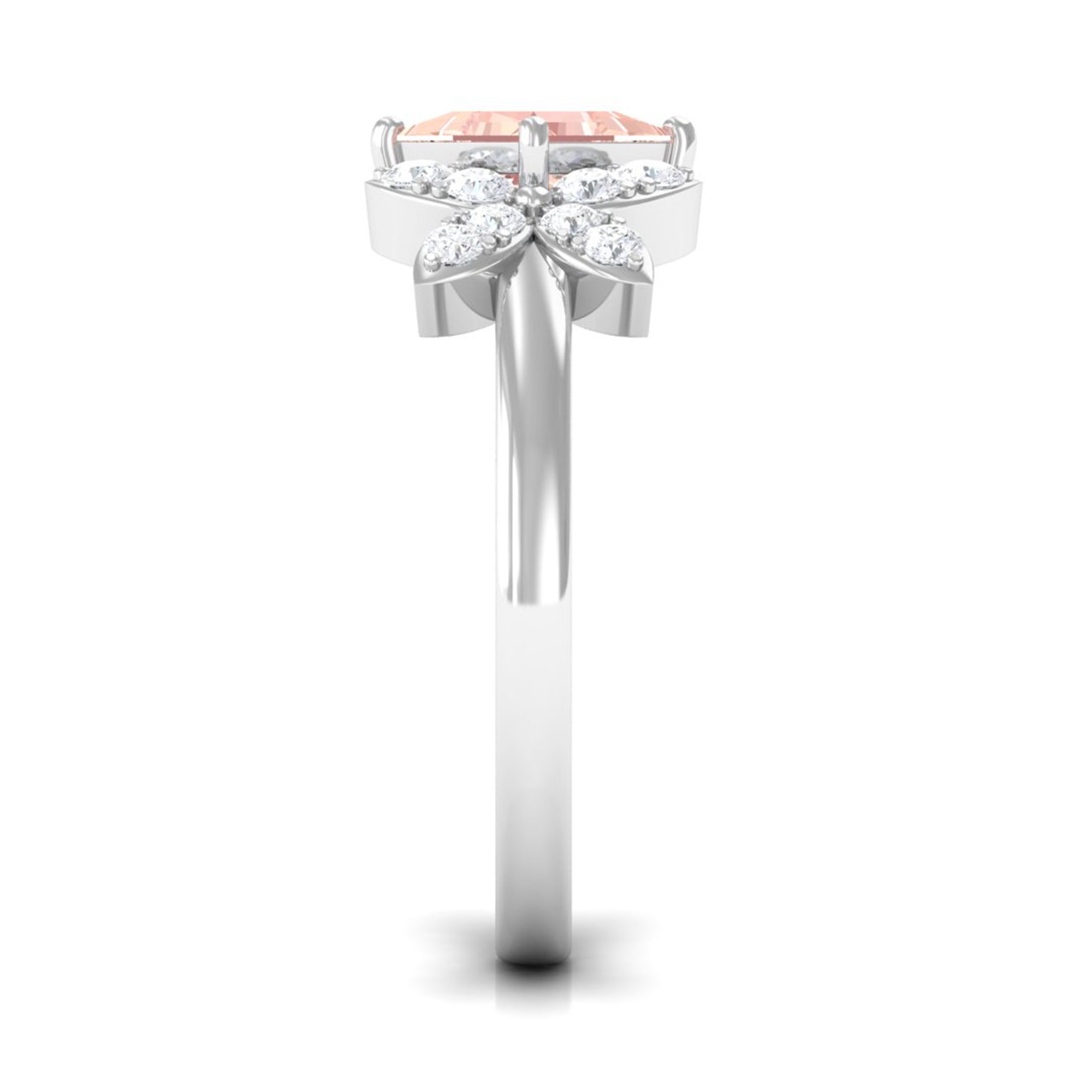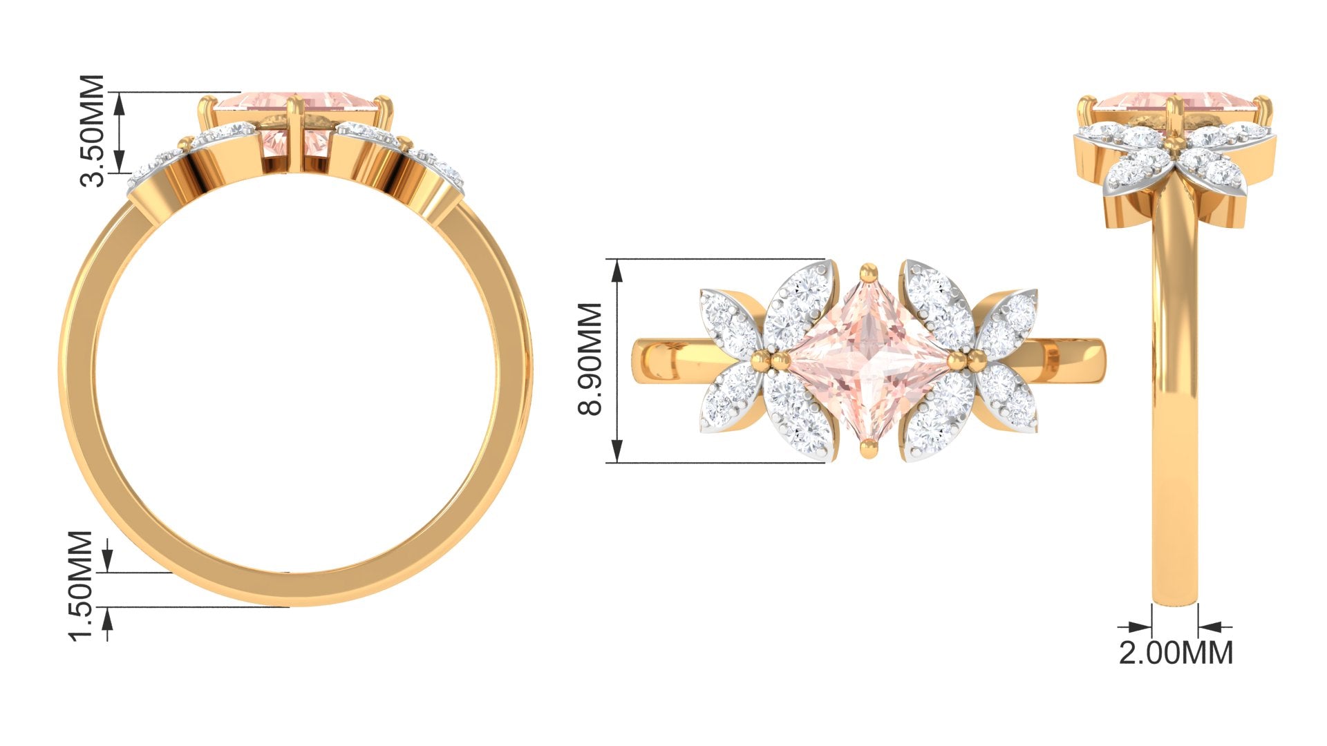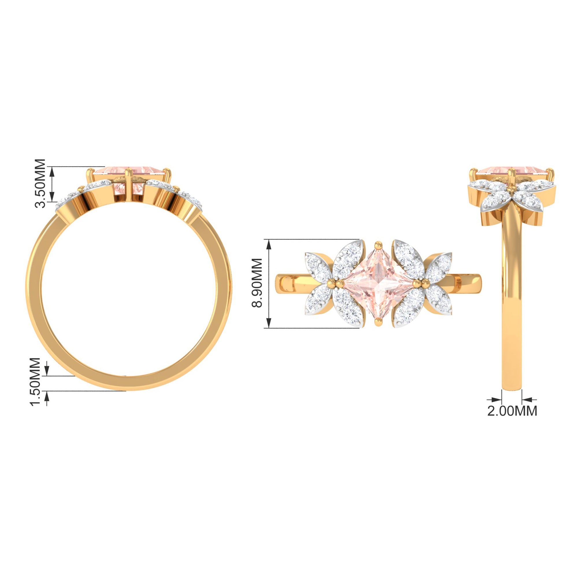 1.25 CT Princess Cut Morganite Floral Engagement Ring with Diamond