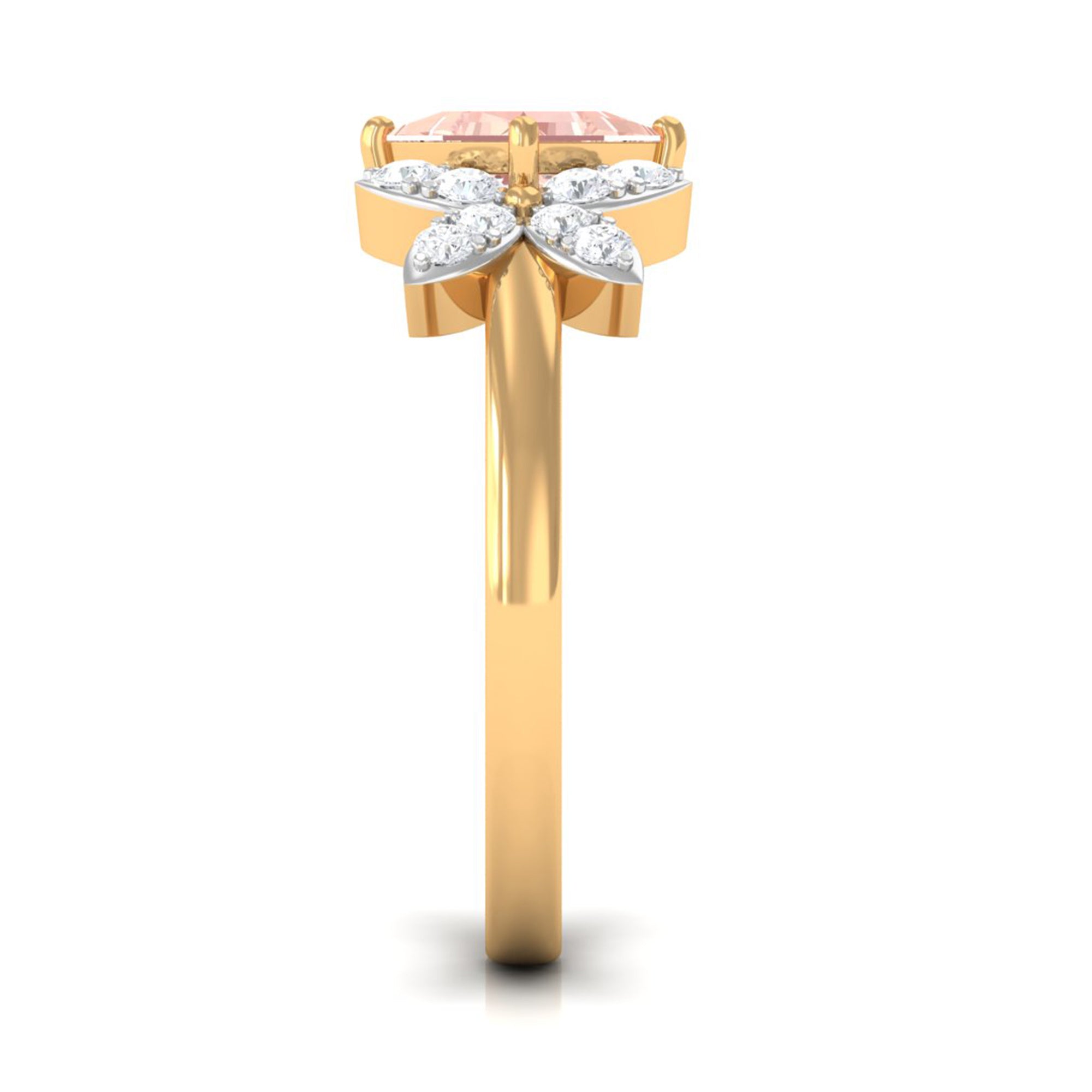 Give your better half a pleasant surprise by presenting this gorgeous Floral Engagement Ring. This Engagement Ring is embellished with Princess Cut Morganite in the center in a prong setting with Round Diamond in a prong setting over a flower design. This Morganite Engagement Ring is crafted in gold metal to shower her with love and happiness.