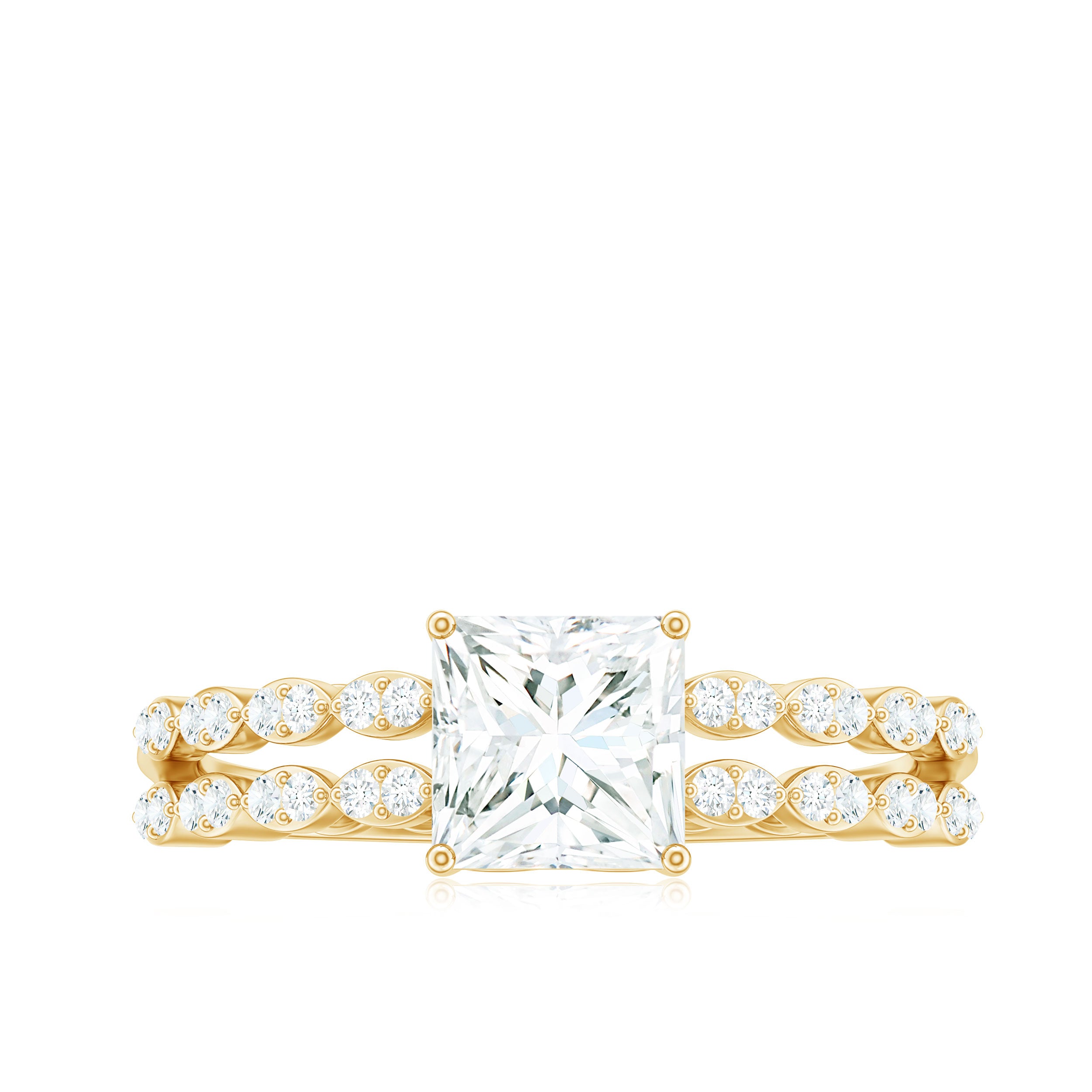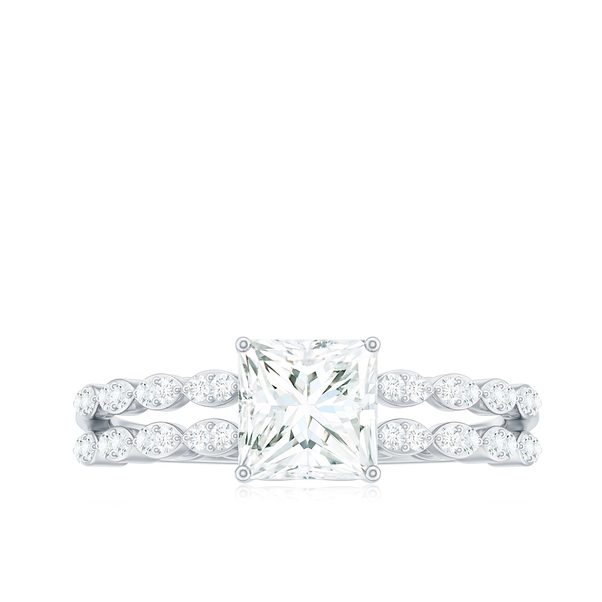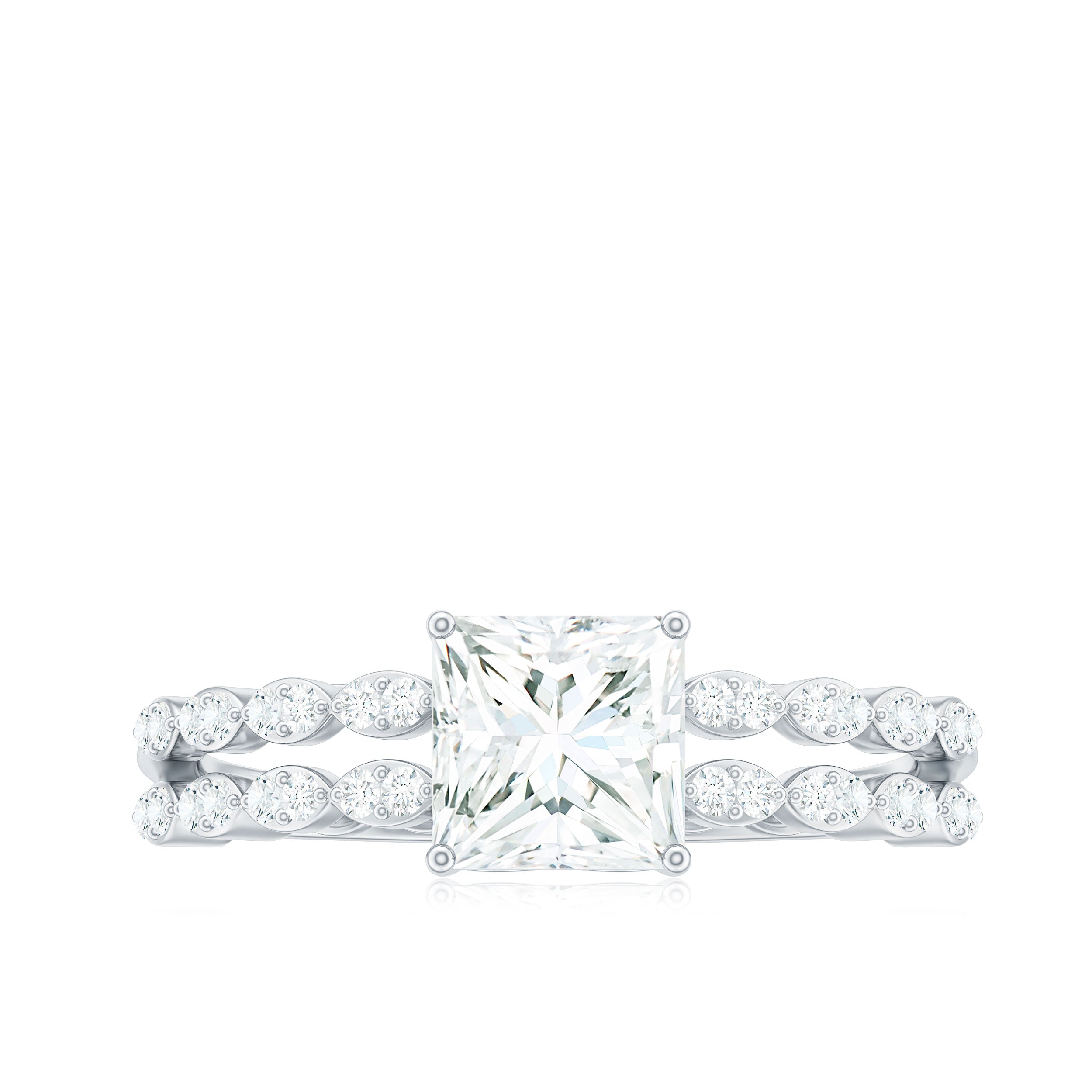 Certified Moissanite Princess Cut Engagement Ring in Double Band