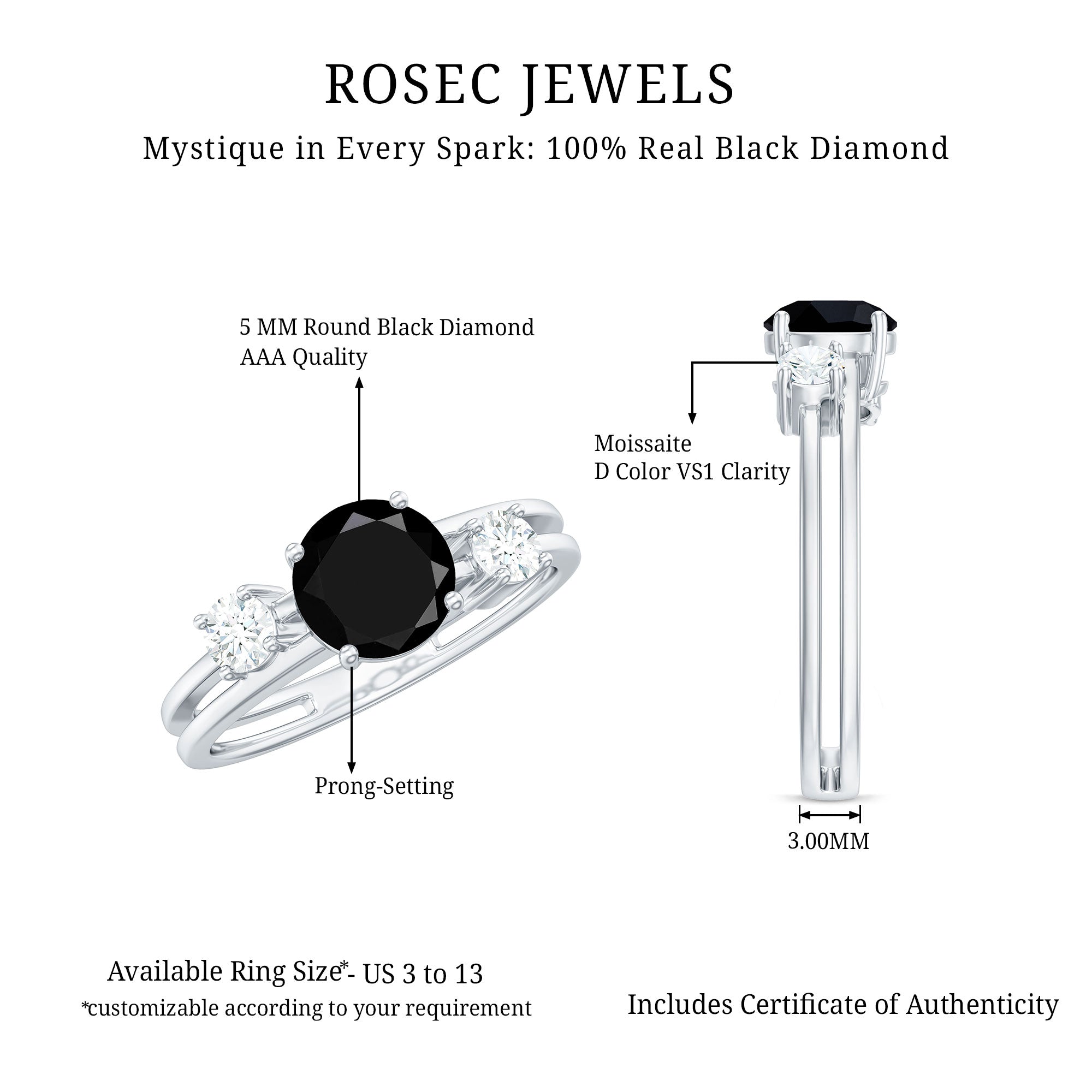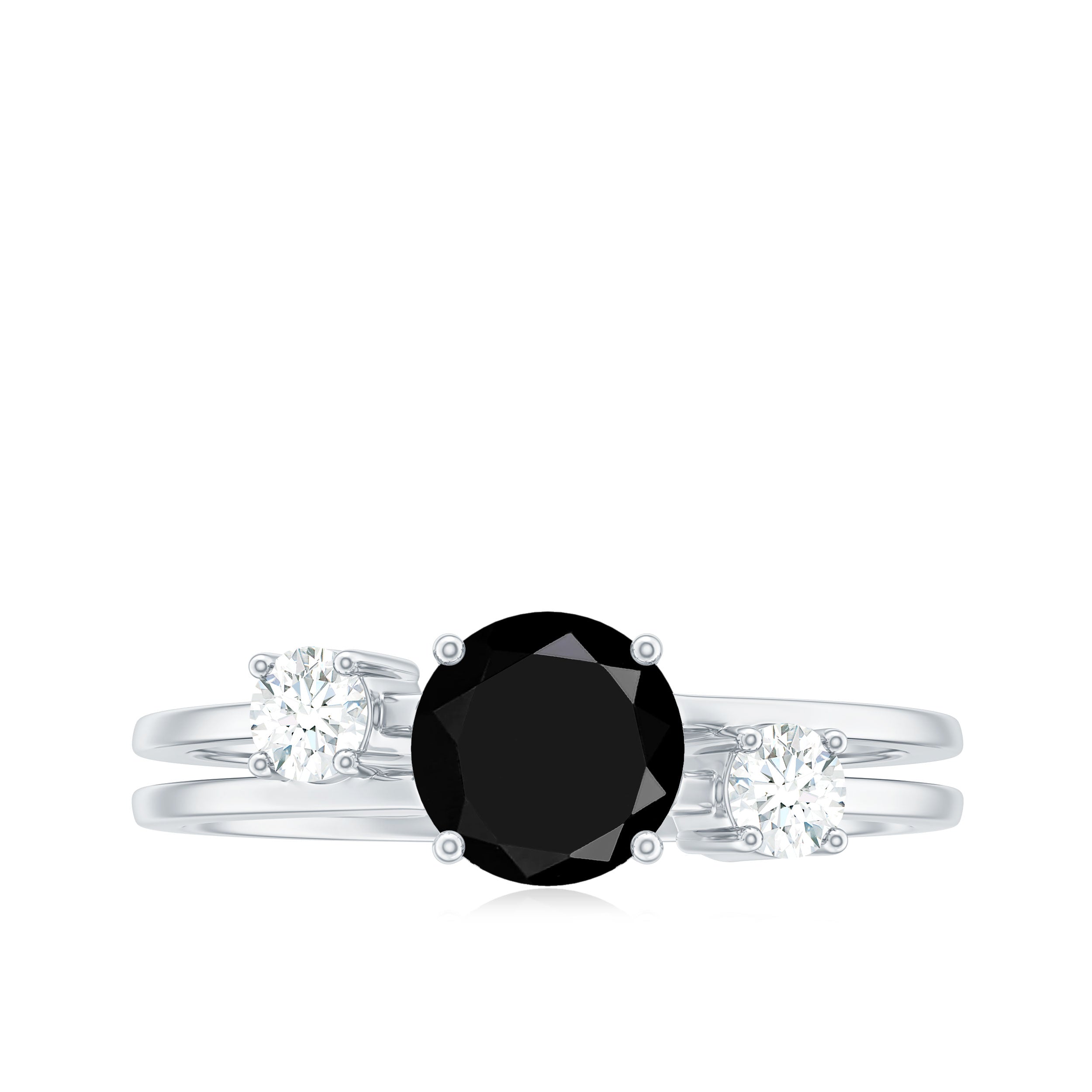 1.25 CT Real Black Diamond Solitaire Double Band Ring with Moissanite