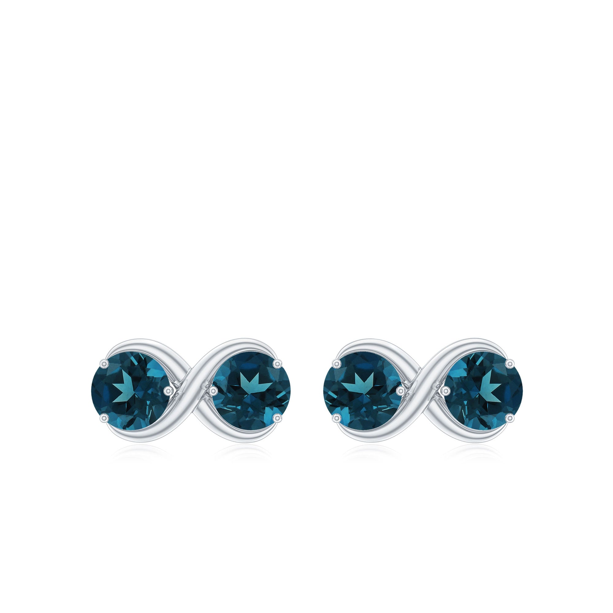 1.25 CT Simple London Blue Topaz Two Stone Infinity Stud Earrings