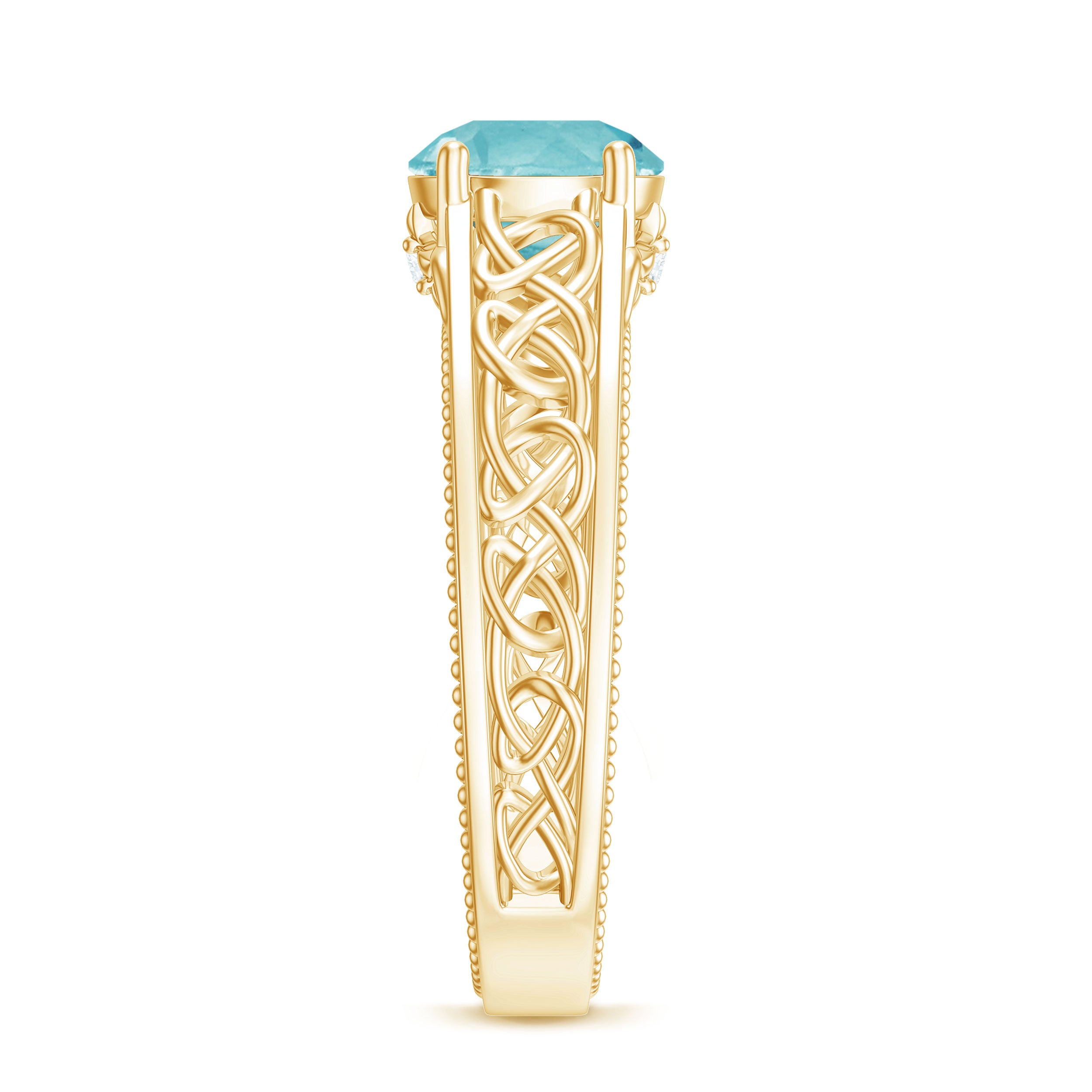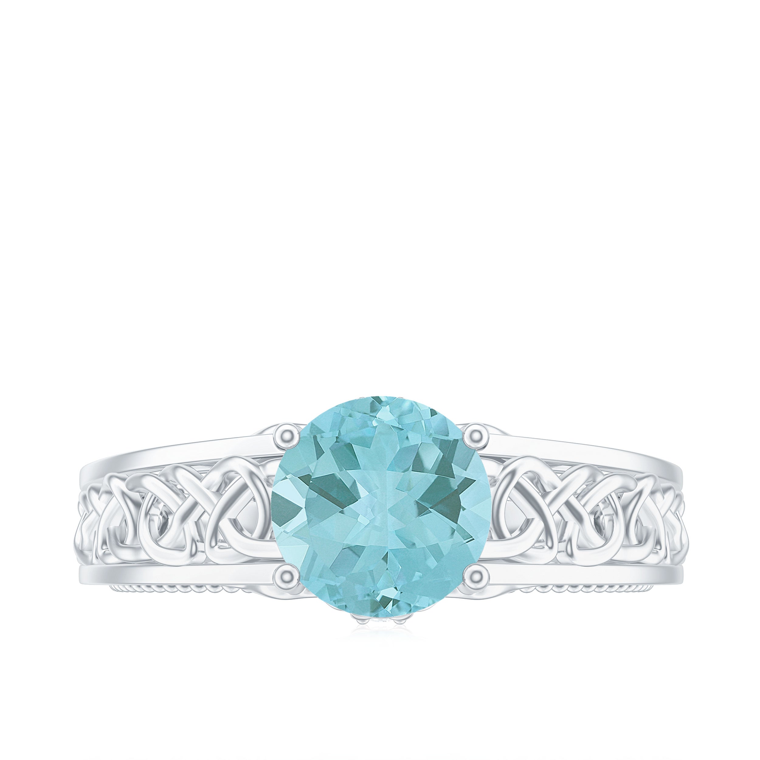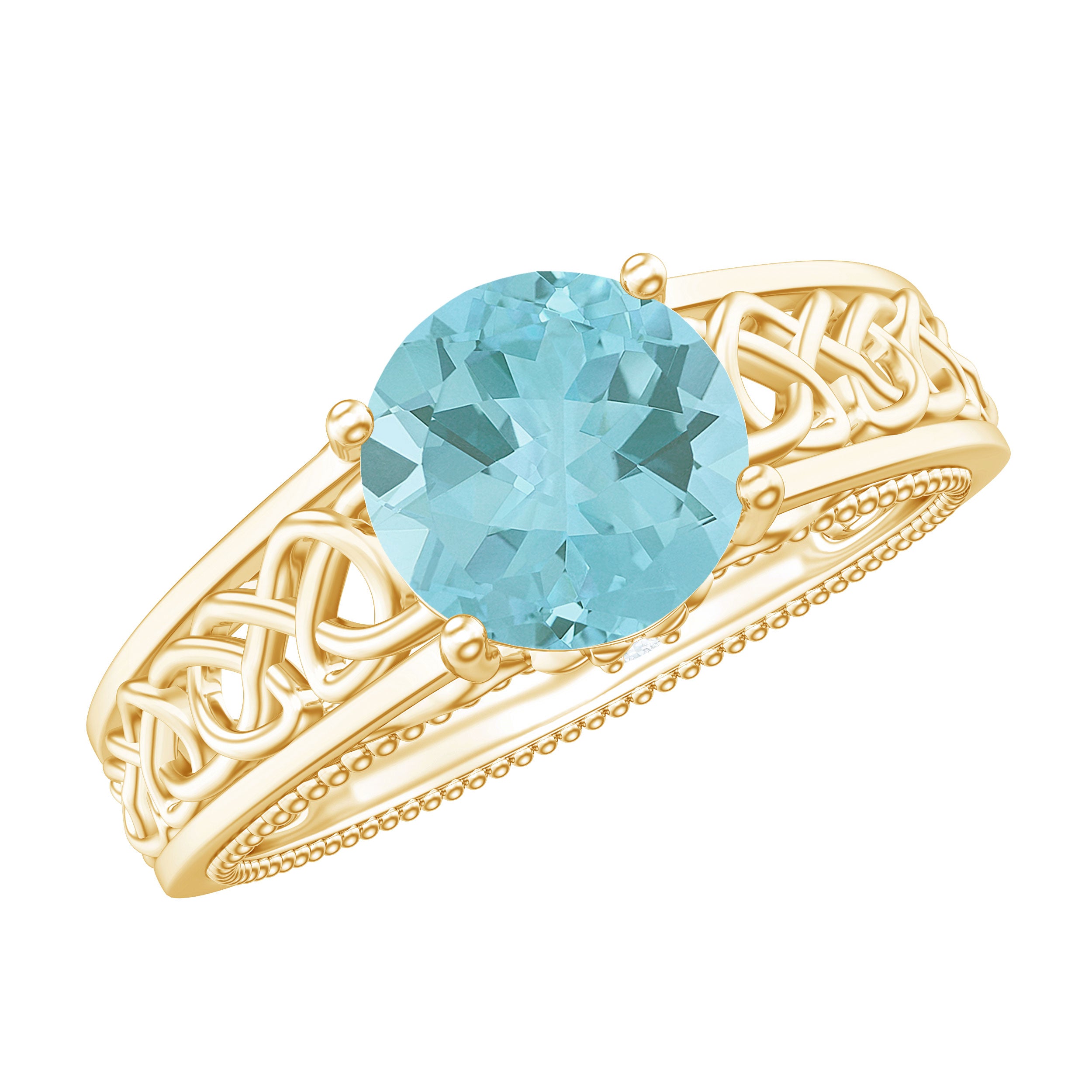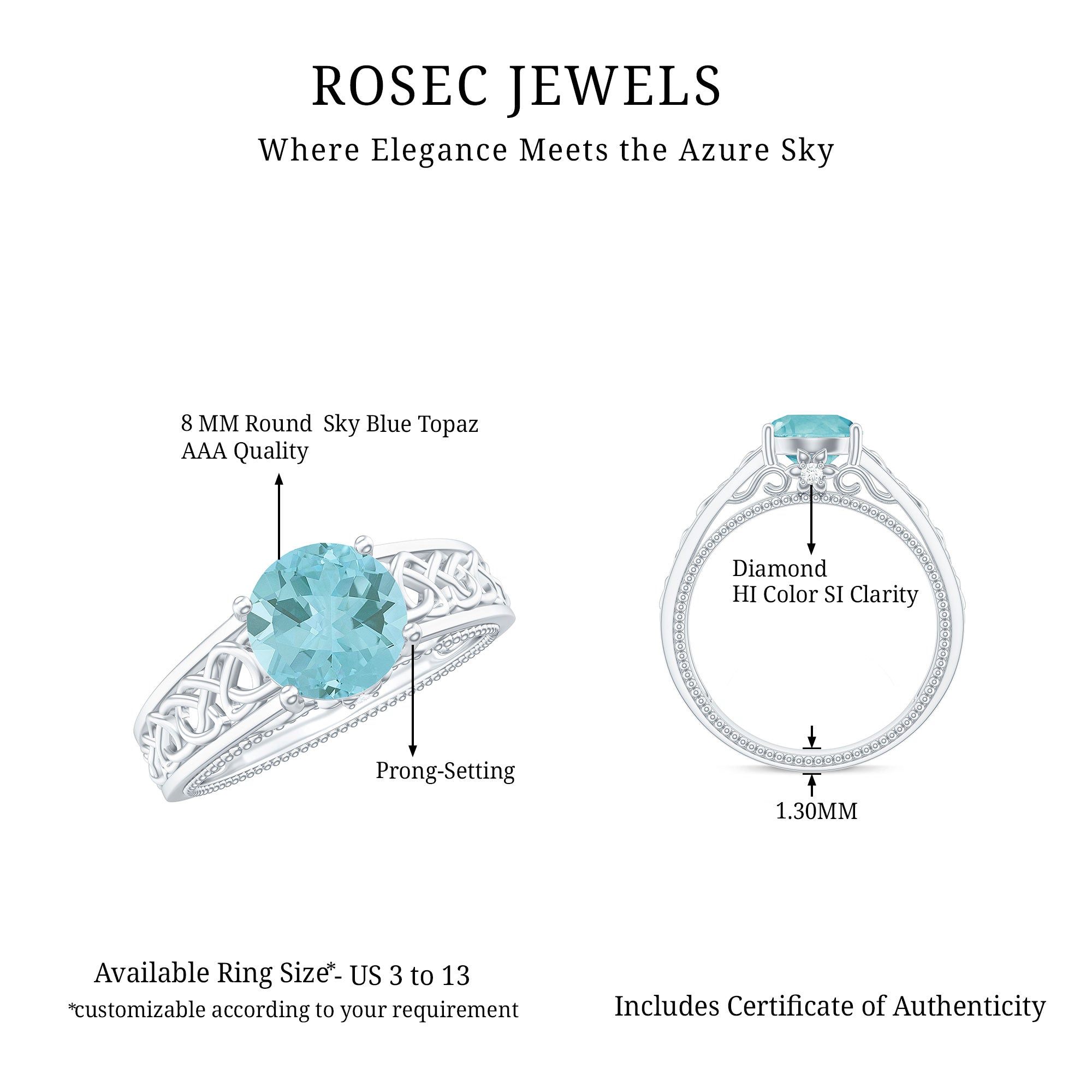 Complement your outfit for the special occasion with this gorgeous Solitaire Band adorned with Round Shape Sky Blue Topaz with Round Shape Diamond. This Solitaire Band Ring is crafted with Solid Gold with Celtic Details for a charming appeal.