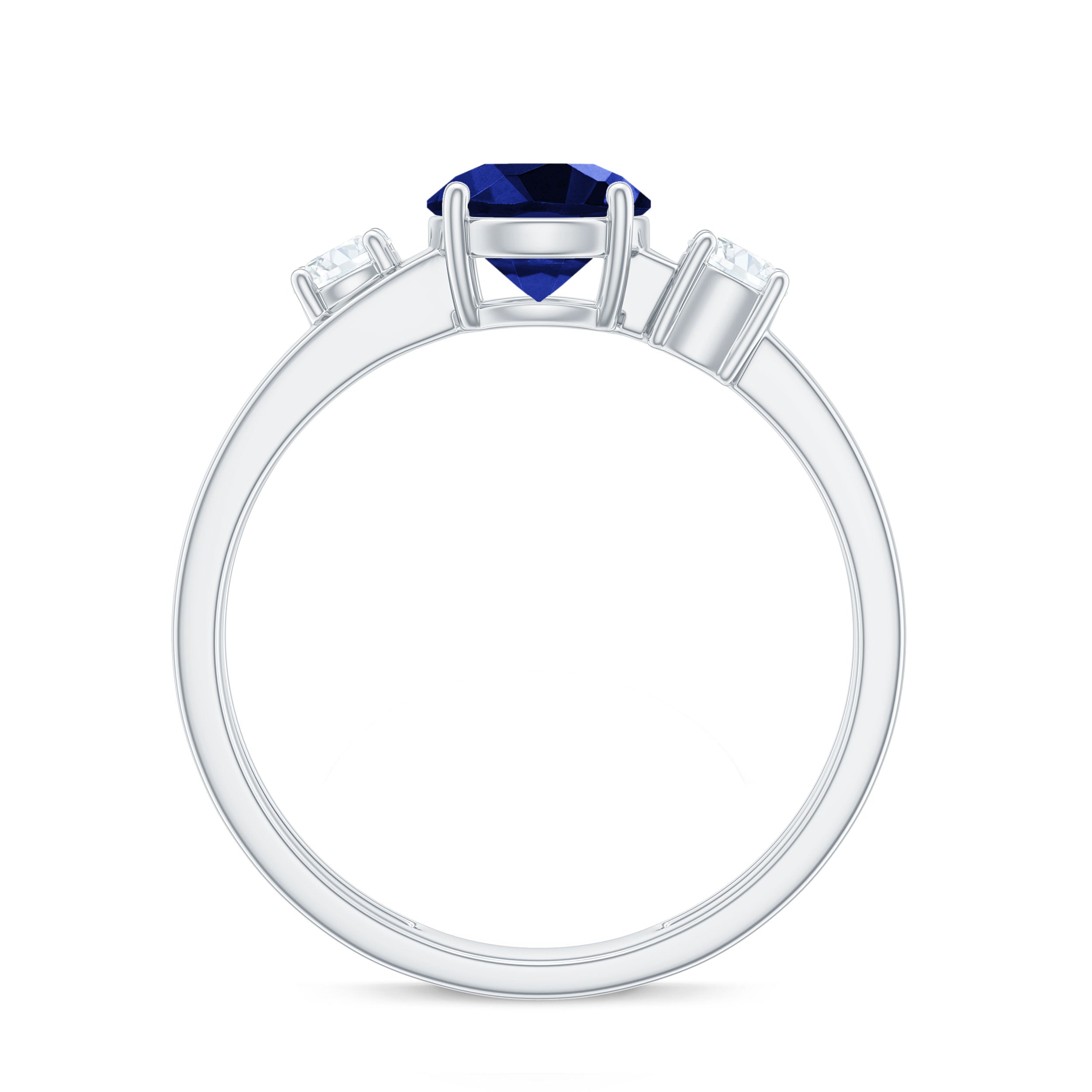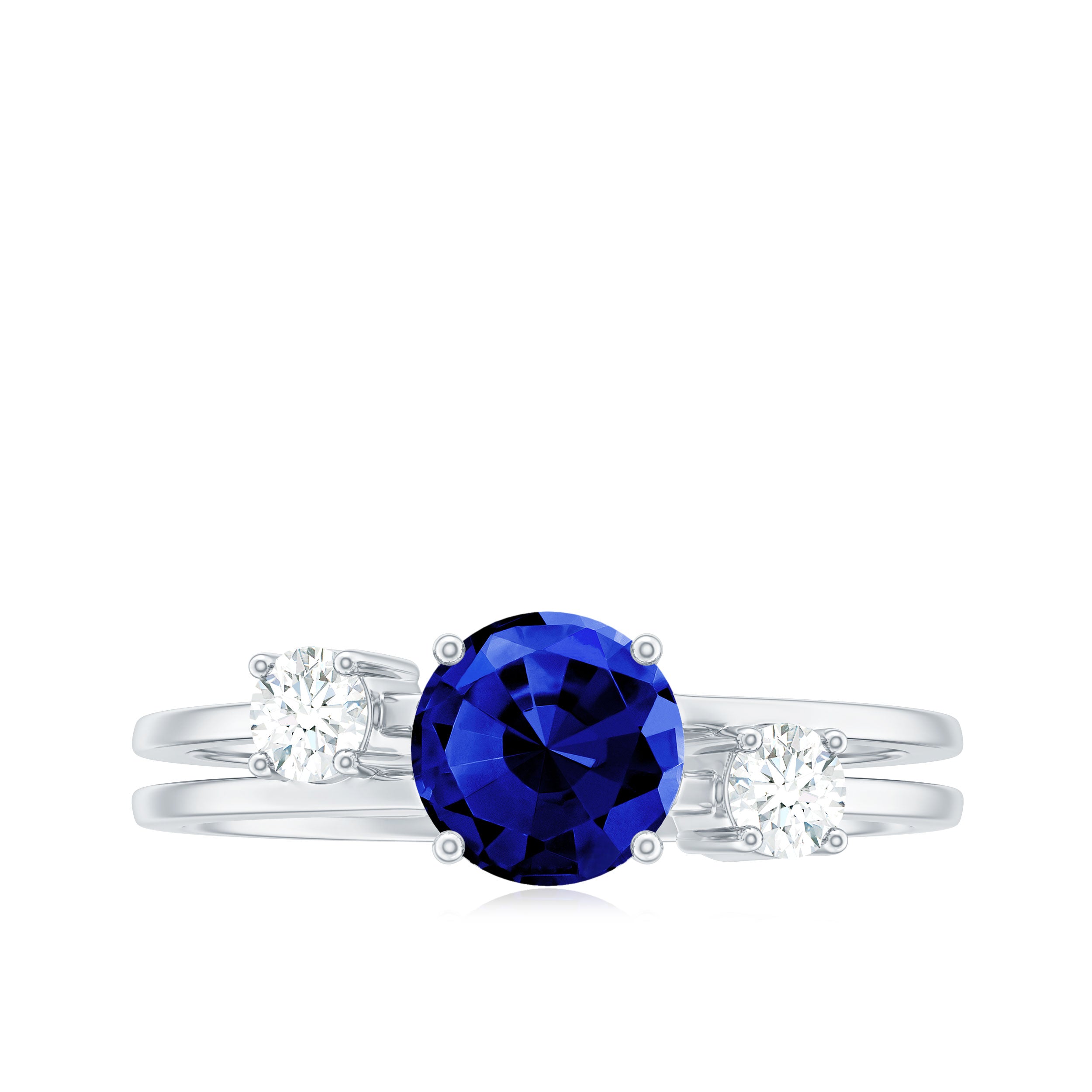 1.25 CT Solitaire Created Blue Sapphire and Diamond Engagement Ring