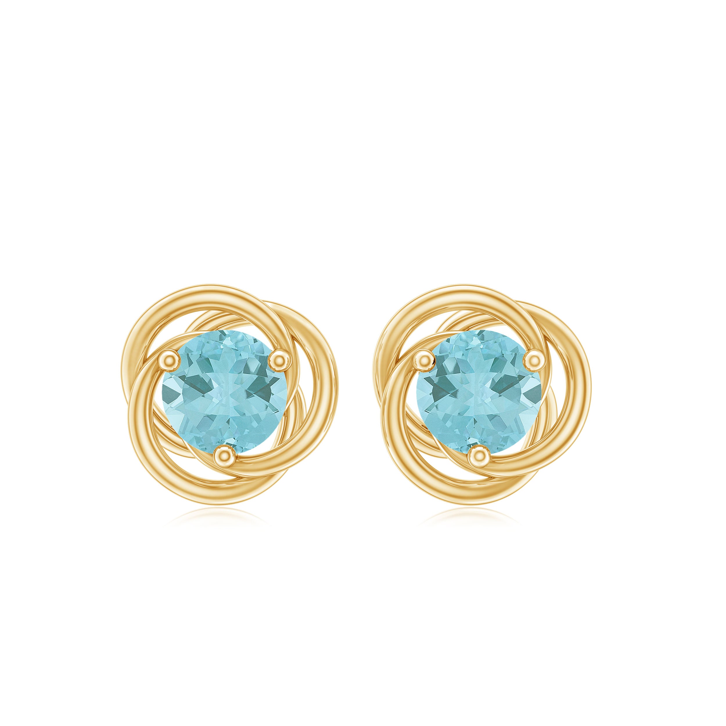 Gifts are the most appropriate way to express your feelings so make a move and present these Swirl Stud Earrings to your love, glamorized with Round Shape Sky Blue Topaz Gemstone set as a Solitaire in Prong Setting and composed of Solid Gold