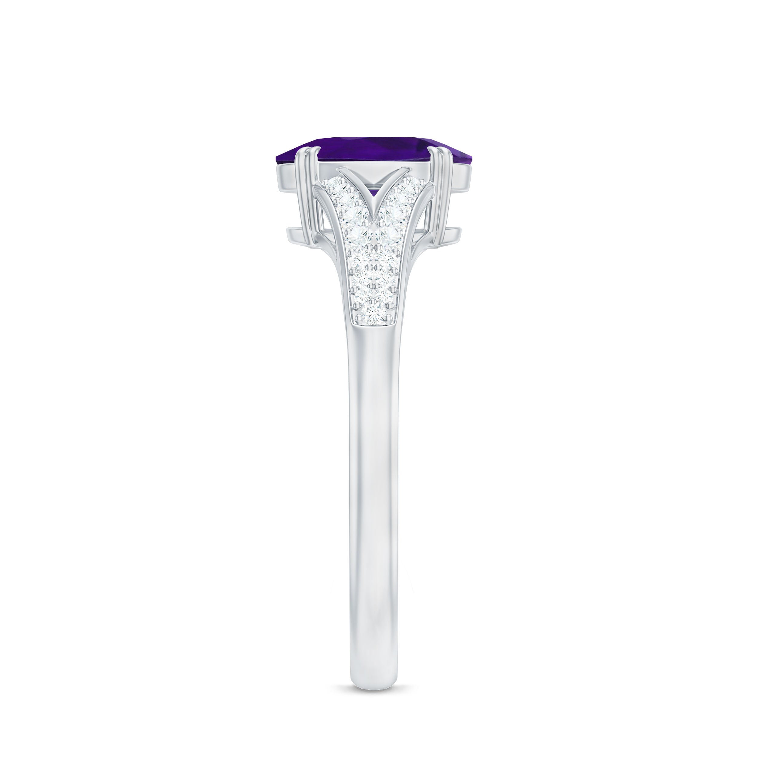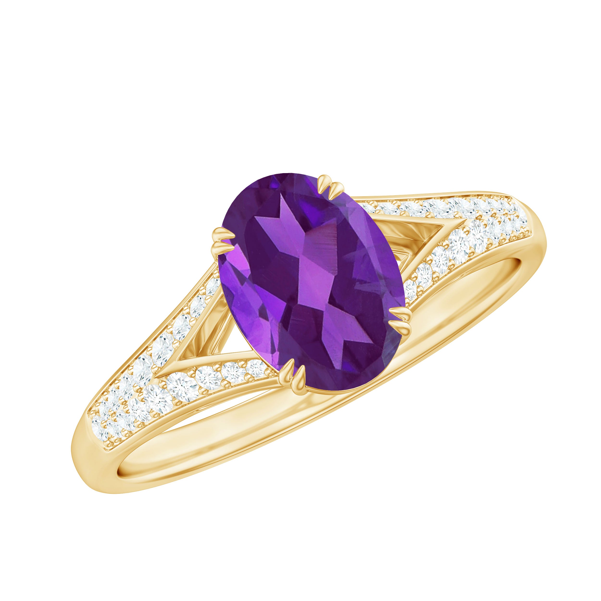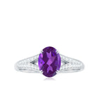 1.25 CT Split Shank Oval Amethyst Solitaire Engagement Ring with Diamond