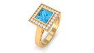 This Engagement Ring is in Gold featuring Princess Cut Swiss Blue Topaz and Round Shape Diamond for you to feel special.