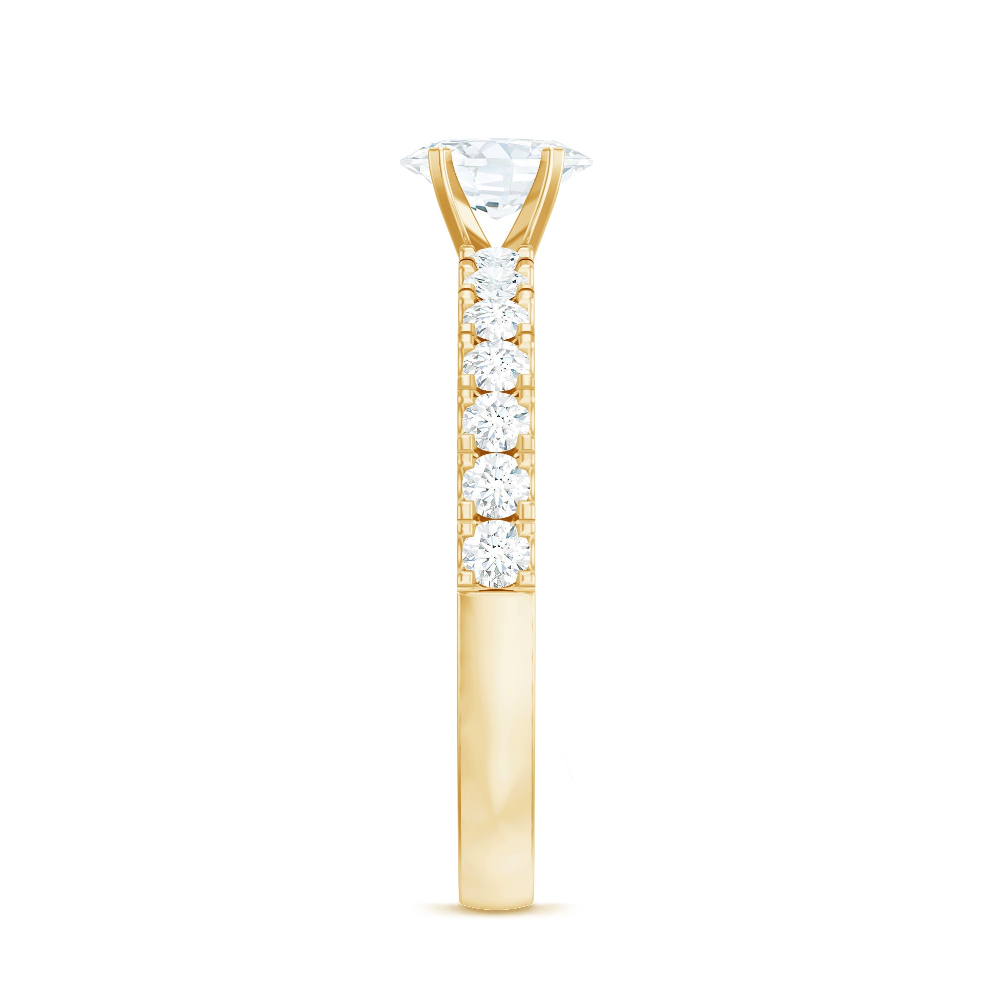 Bring out your look to the next level by wearing this admirable Solitaire Ring which is embellished with Oval Cut Zircon in the Center in Peg Head Setting along with Round Cut Zircon Side Stones. Crafted with Solid Gold, this Zircon Solitaire Ring will create a luxurious appearance.