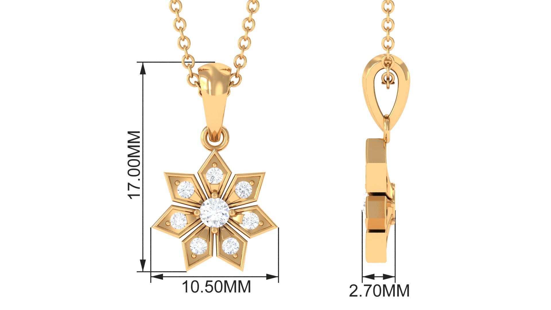 Discover elegance and simplicity with the adorable Flower Pendant, adorned with Round Cut Moissanite. This Moissanite Floral Pendant is a chic and charming accessory, perfect for any woman. Embrace its timeless appeal and add a touch of sophistication to your style with this delightful pendant.