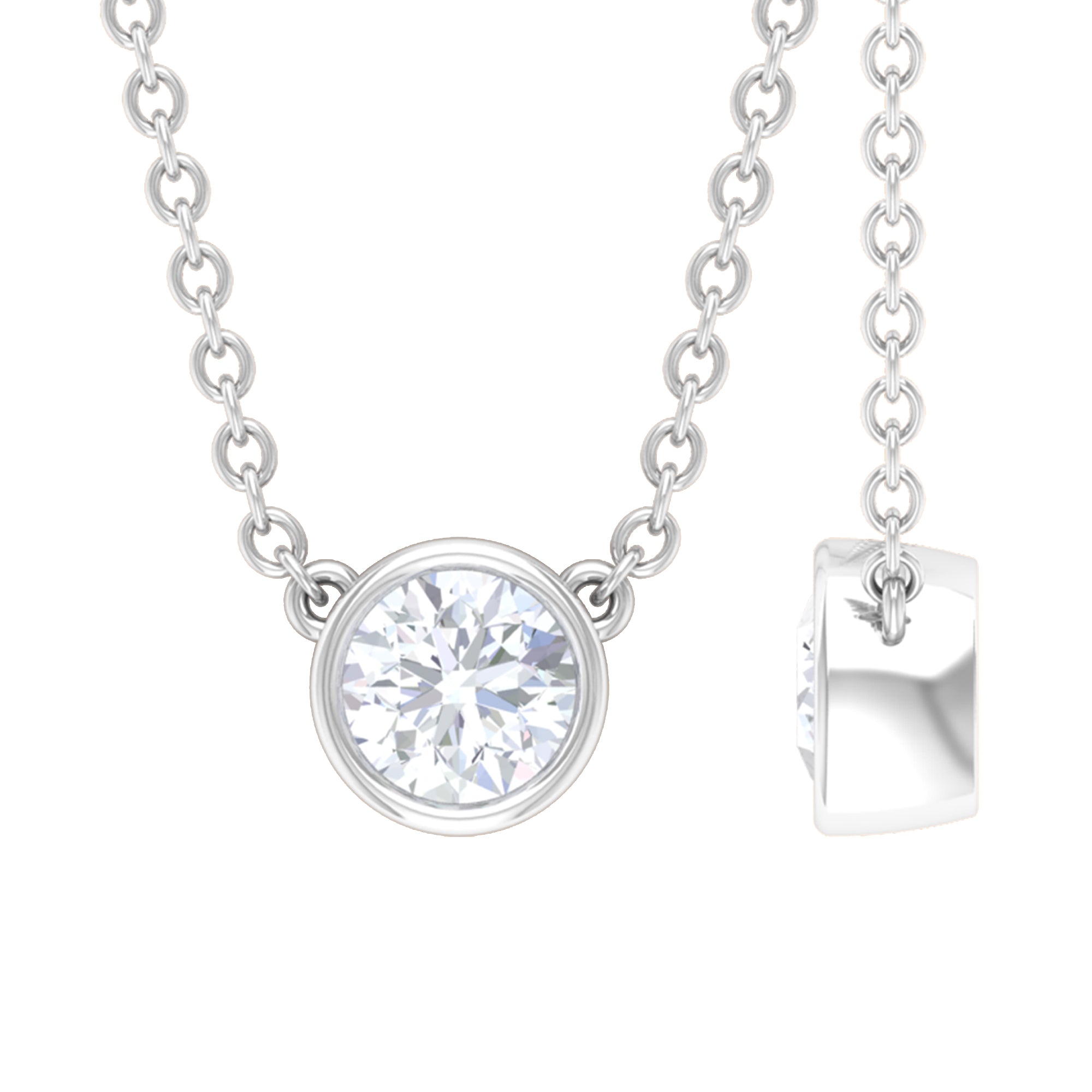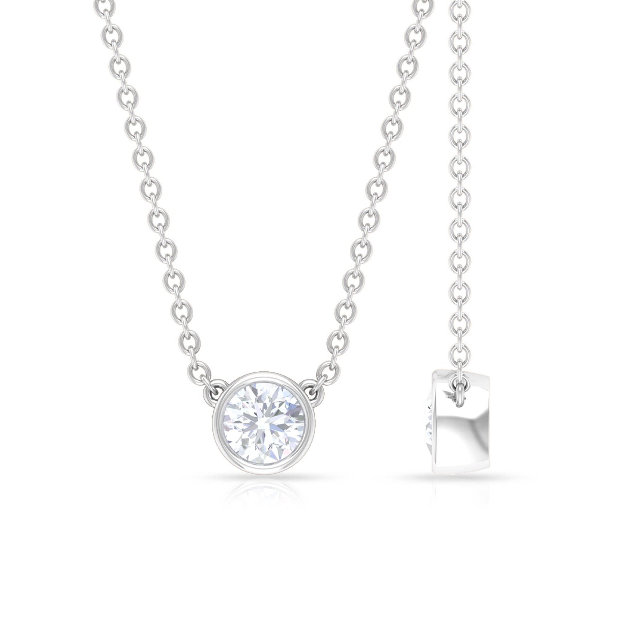 Certified Moissanite Solitaire Necklace in Bezel Setting