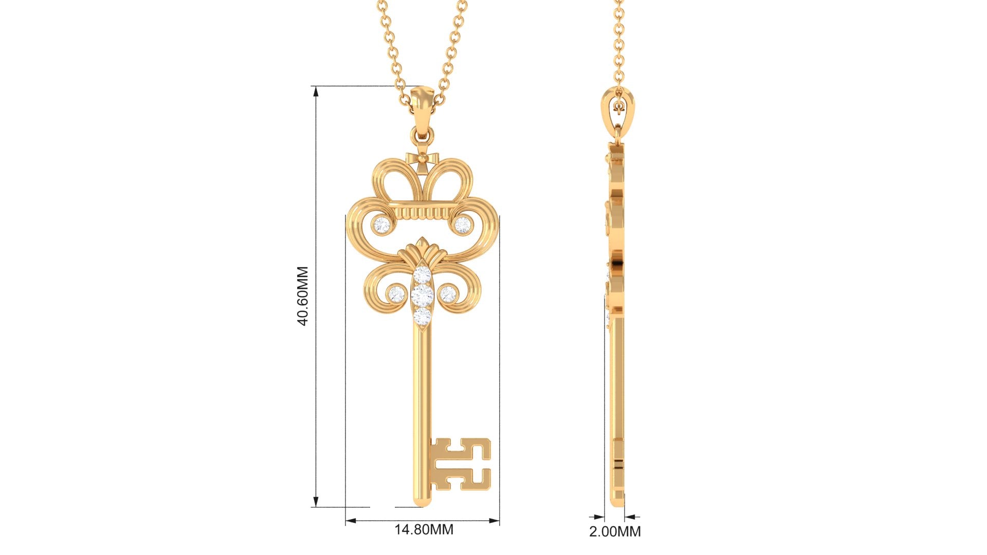 1/4 CT Certified Moissanite Vintage Gold Key Pendant Necklace