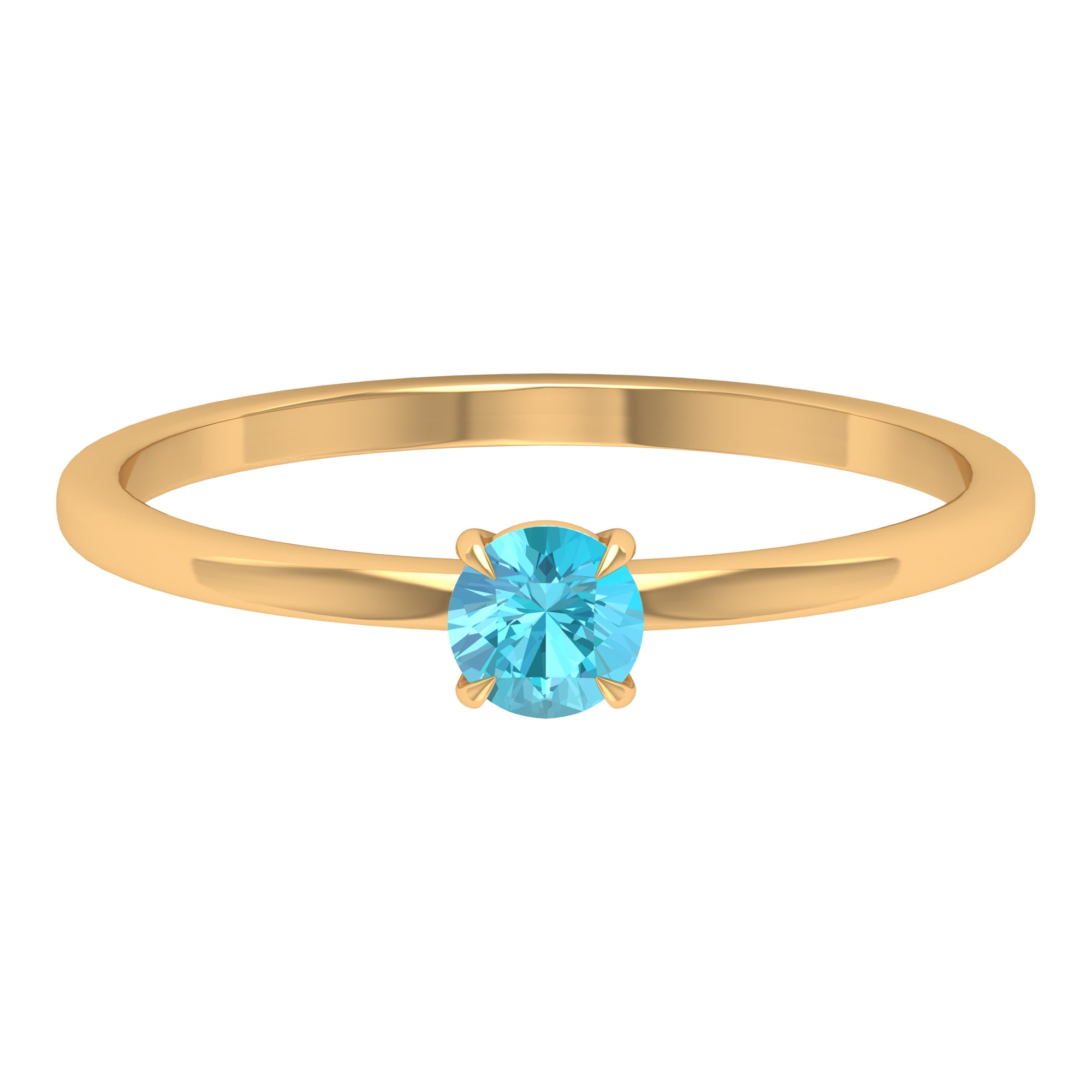 Be Trendy with this Solitaire Ring embellished with Round Shape Swiss Blue Topaz as Solitaire set in Claw Prong Setting. This Gold Stackable Ring is Composed of Solid Gold.