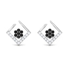 1/4 CT Created Black Diamond and Diamond Floral Stud Earrings