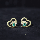Lab Created Emerald and Moissanite Heart Paw Stud Earrings