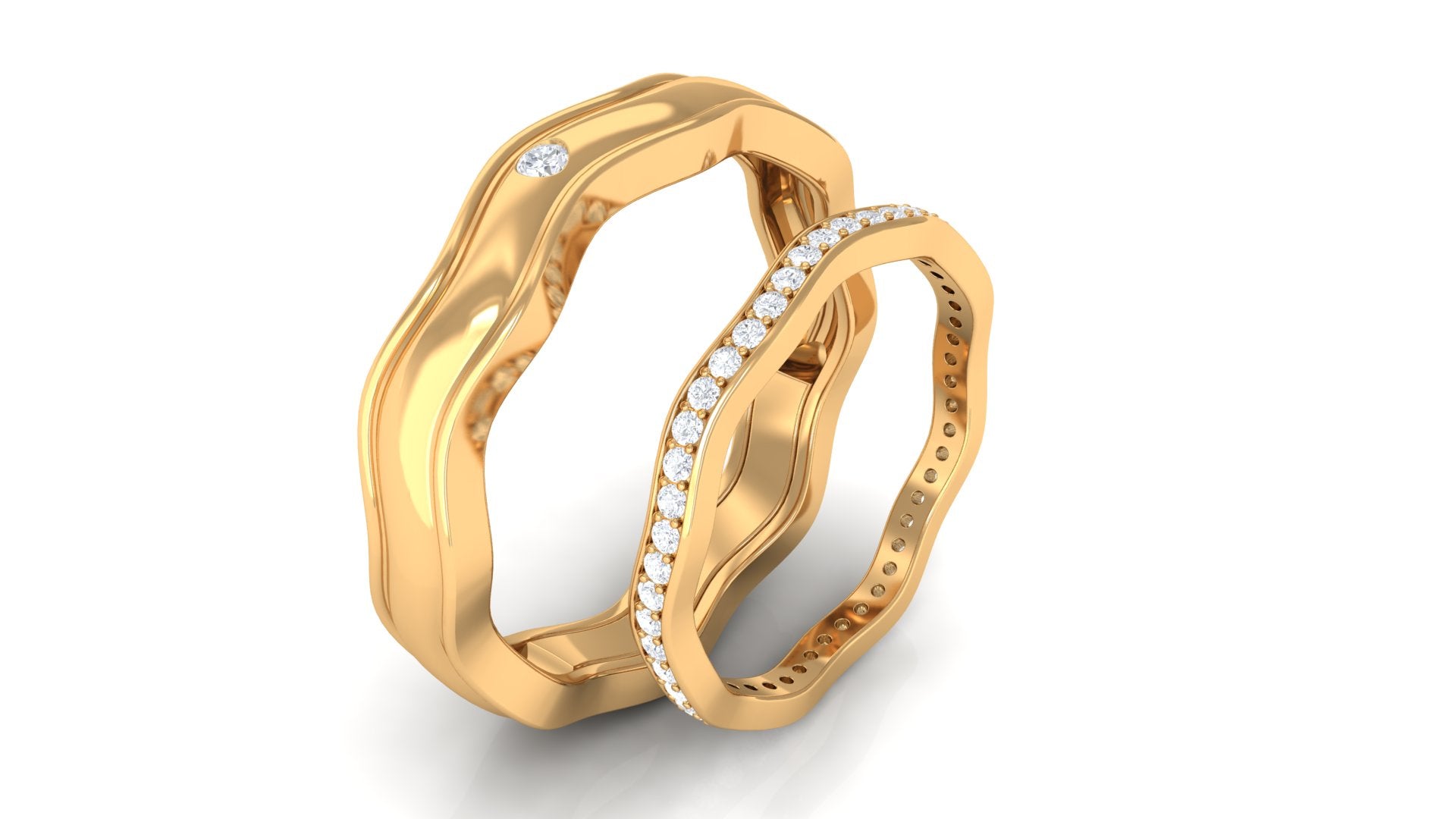 Be a Trendsetter with our Rings for Him and Her featuring Round Cut Diamond set in Other Setting with Curved Zig-Zag details, adorned in Solid Gold.