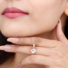 1/4 CT Moonstone and Diamond Solitaire Flower Pendant Necklace