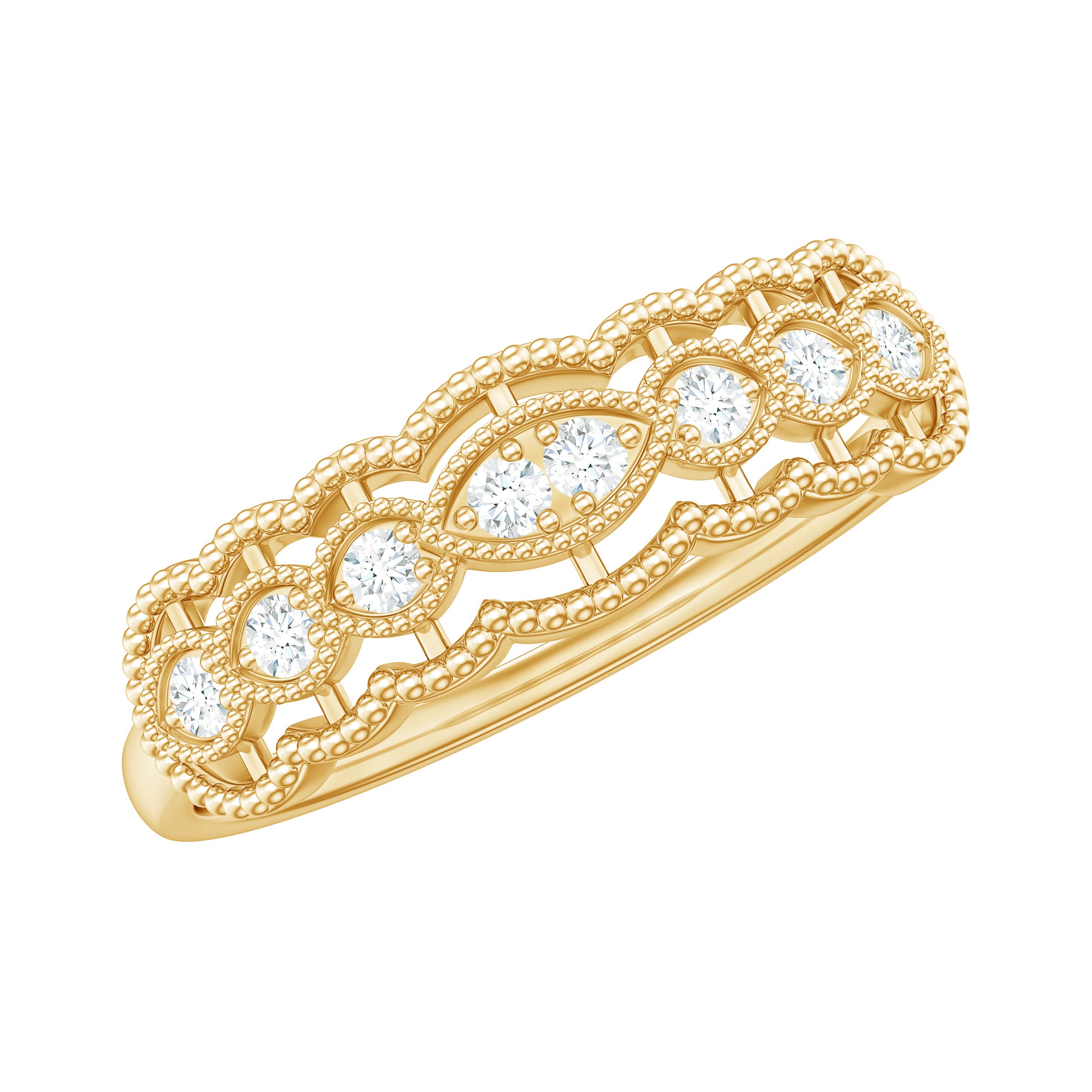 1/4 CT Natural Diamond Gold Milgrain Anniversary Ring in Prong Setting
