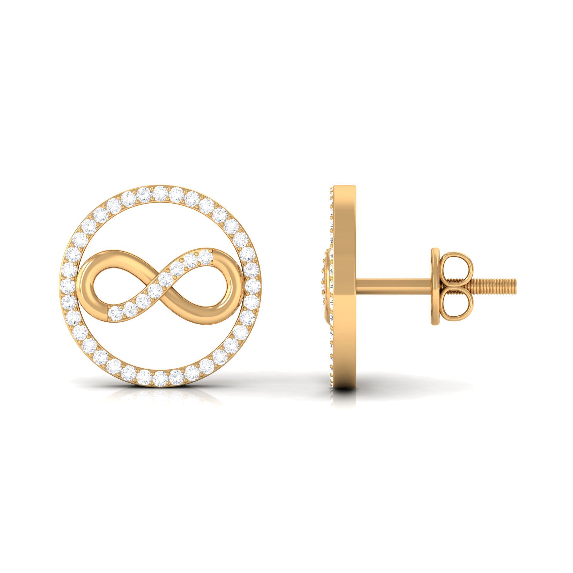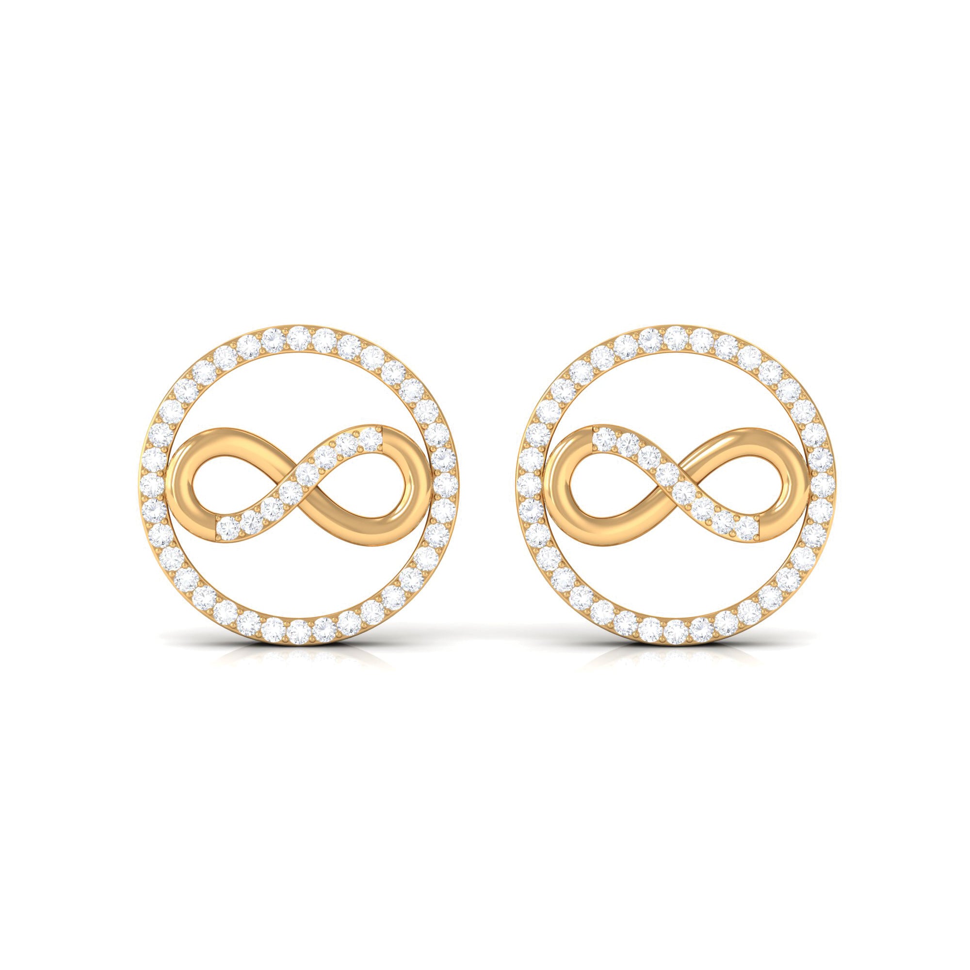 Grab this beautiful Open Circle Earrings embellished with small Round Shaped Diamonds are set in a Pave Setting. This Infinity Stud Earrings crafted in Solid Gold.