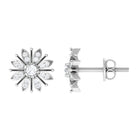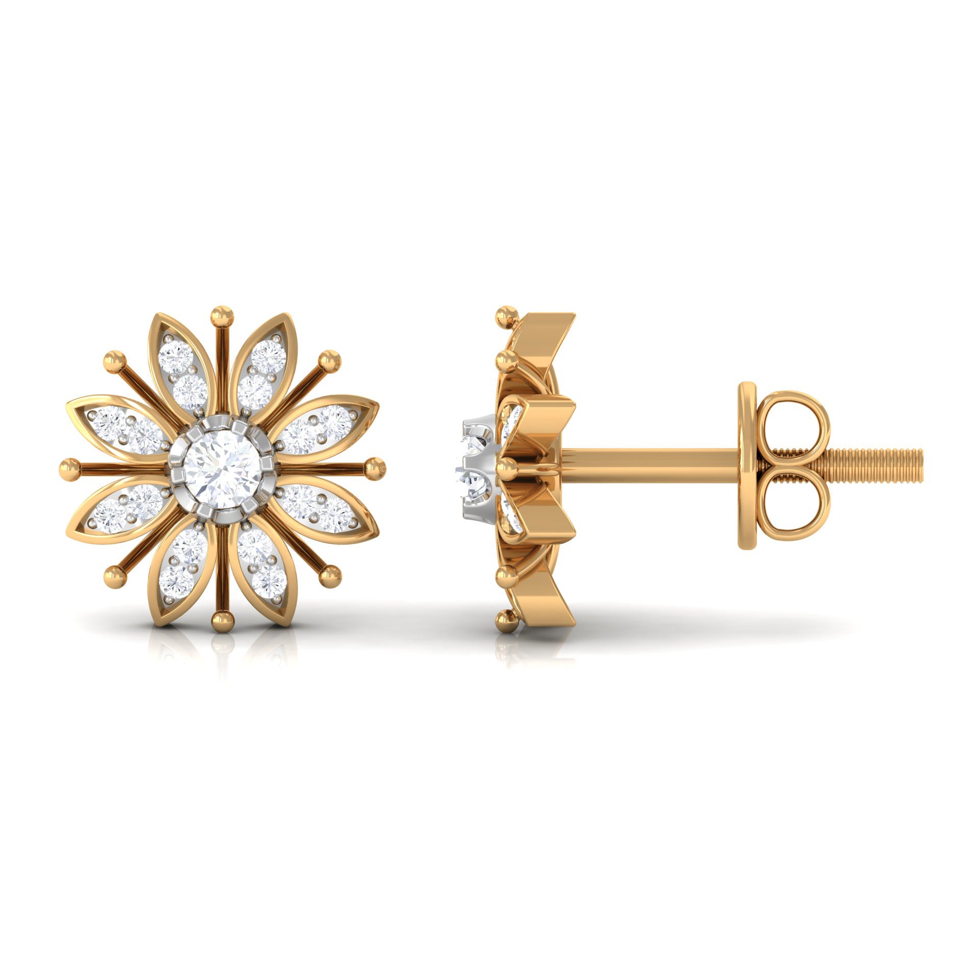 Indulge in the delicate charm of floral elegance with these Flower Stud Earrings, designed to bring a soft yet captivating sparkle to your everyday look. Each Earring blooms with a graceful Flower design, crafted to highlight every curve and petal. The sparkling Diamond stones placed within the design catch the light beautifully, adding a touch of radiance that feels fresh, feminine and effortlessly stylish. Secured with Screw Back Closure, these Diamond Stud Earrings offer comfort and confidence from morning until night, making them perfect for workdays, weekend brunches, romantic dinners or special celebrations. Their versatile sparkle pairs seamlessly with everything, giving your outfit a graceful finishing touch without overwhelming your style. Presented in a signature jewelry box, these Diamond Flower Earrings make a thoughtful surprise for birthdays, anniversaries, holidays or simply to brighten someone’s day. Whether you are treating yourself or a loved one, these Diamond Earrings carry a timeless beauty that never fades.